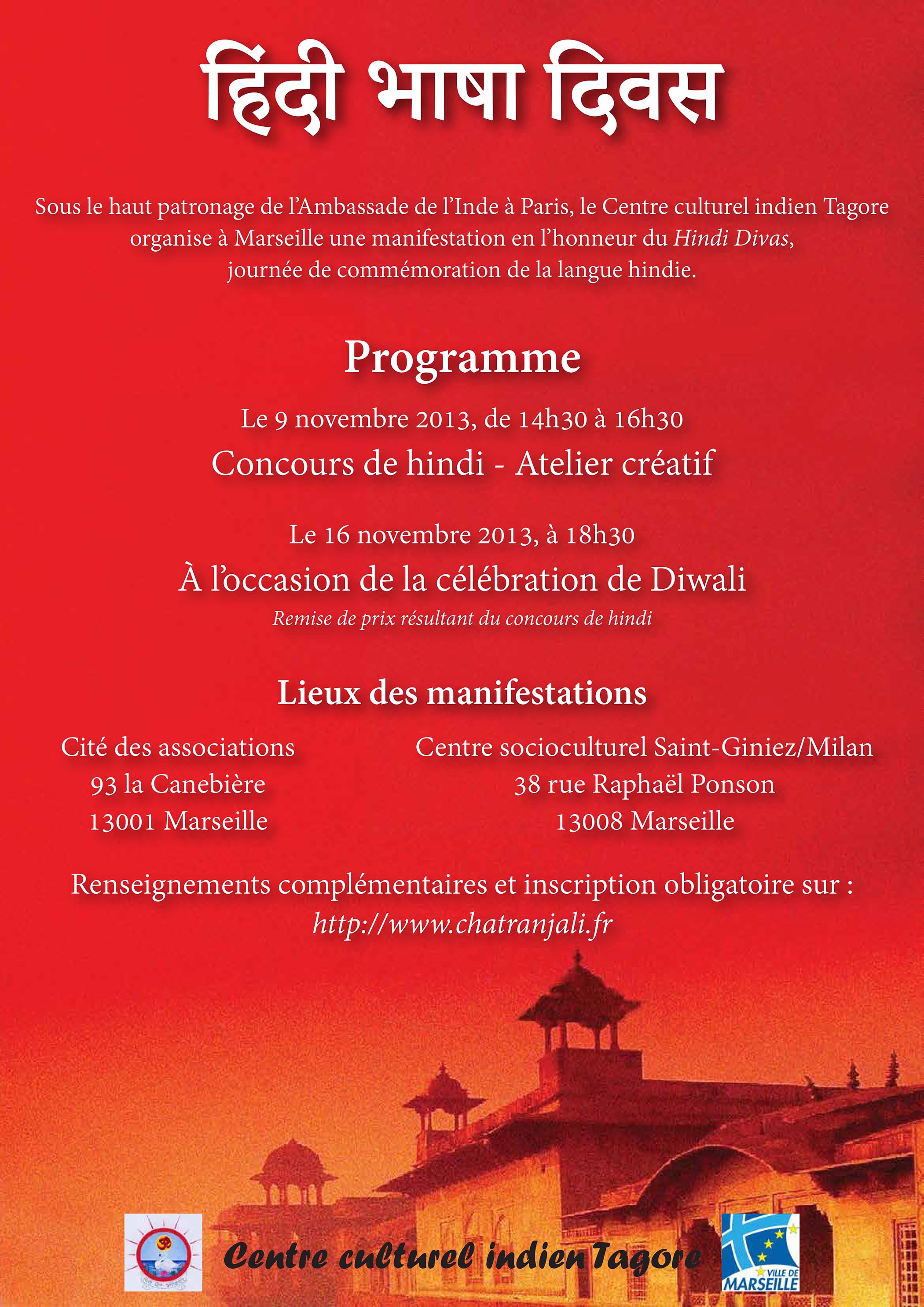 - 9 novembre 2013, de 14:30 à 16:30 : concours de hindi et atelier créatif