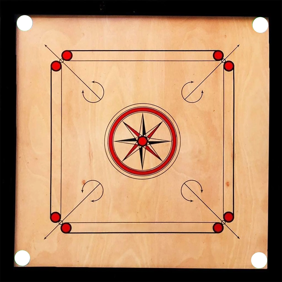 Le carrom board est un jeu de table très pratiqué en Asie, et tout particulièrement en Inde, se jouant avec des pions que l’on fait glisser sur un tablier en bois. Le but du jeu est de placer tous les pions d’une couleur dans les trous situés aux quatre coins du tablier.
