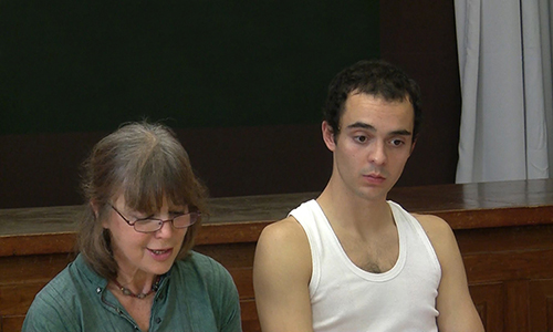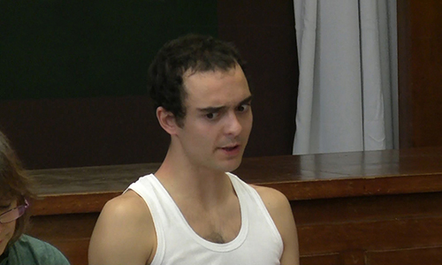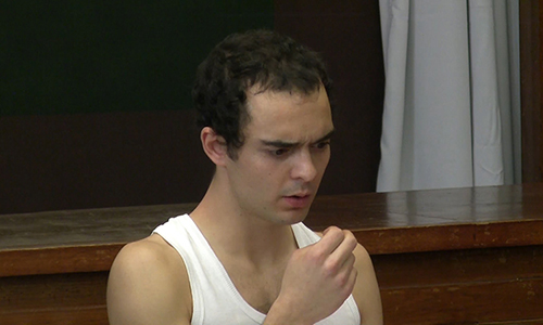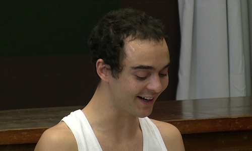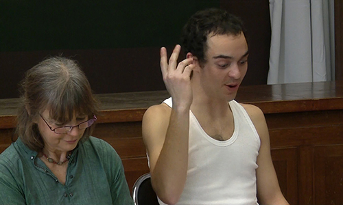 | [Pundalik goes to a corner and fetches a stick.] | [Pundalik va dans un coin et apporte un bâton.] | ||