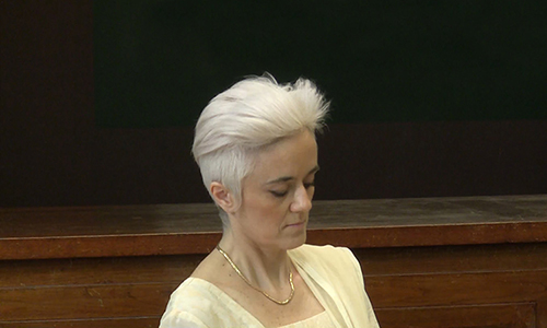 | [The voices of pilgrims singing outside can be heard.] | [Dehors, on entend la voix des pèlerins en train de chanter.] | ||