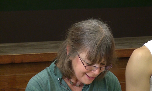 | [Mother goes into the granary and returns with her hands full of rice and corn.] | [La mère rentre dans le grenier et revient les mains pleines de riz et de maïs.] | ||