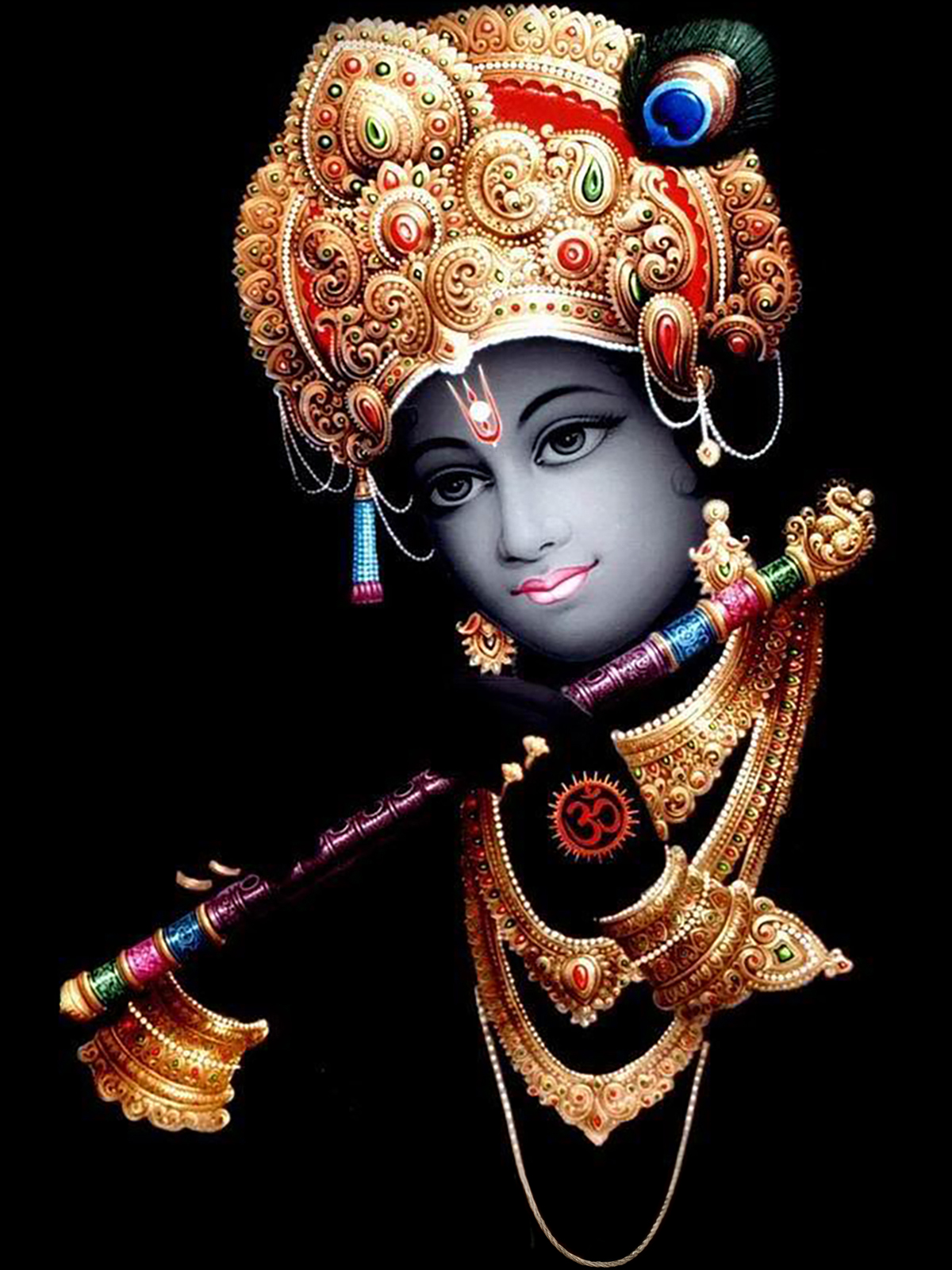 O Krishna, the Imperishable, your graceful locks, your mischievous eyes, your wondrous beauty inspires us all! You are the beloved of Ram and Sita, and Lord Narayana himself, come, inspire us all! |