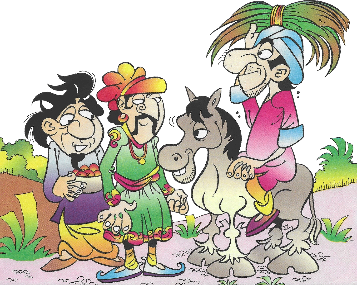 Le matin suivant, Birbal présenta ces deux idiots à la cour et déclara à Akbar : « Ô Protecteur du Monde, j’ai rempli ma mission, voici les idiots. » |