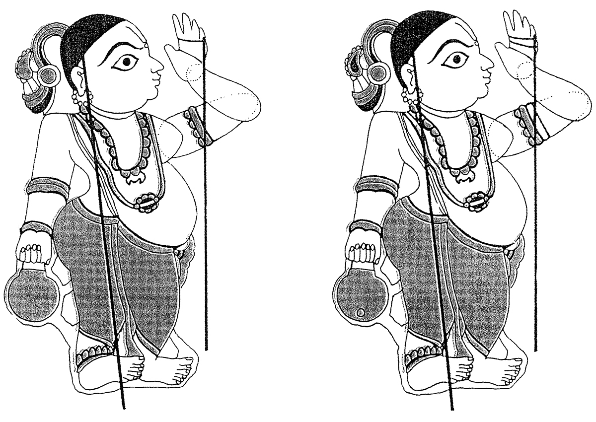 | चित्र में दिखाई गई दोनों कठपुतलियाँ देखने में एक जैसी लगती हैं, पर ये हैं अलग। इनमें पाँच अंतर बताओ। | Les deux marionnettes représentées sur cette image se ressemblent, mais elles sont différentes. Indique leurs cinq différences. |