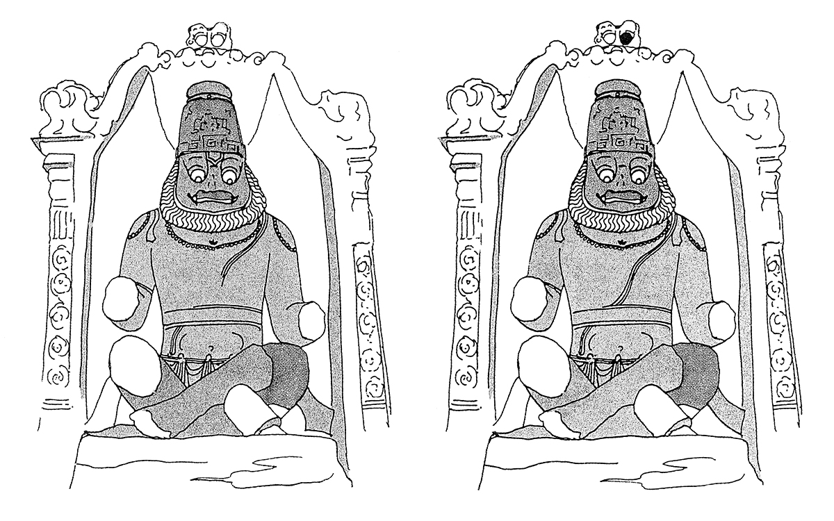 | इस मूर्ती के दो ड्राइंग-चित्र में क्या तुम पांच अंतर बता सकते हो? | Peux-tu repérer les cinq différences sur les deux dessins de cette statue ? |