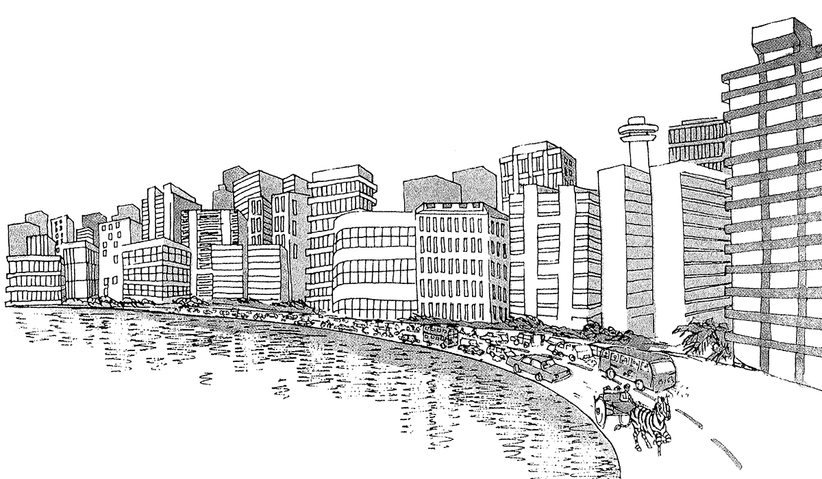 | बंबई के मरीन ड्राइव के चित्र को देखकर बताओ कि इसमें क्या नहीं होना चाहिये? | En regardant l’image de Marine Drive à Mumbai, repère l’anomalie. |