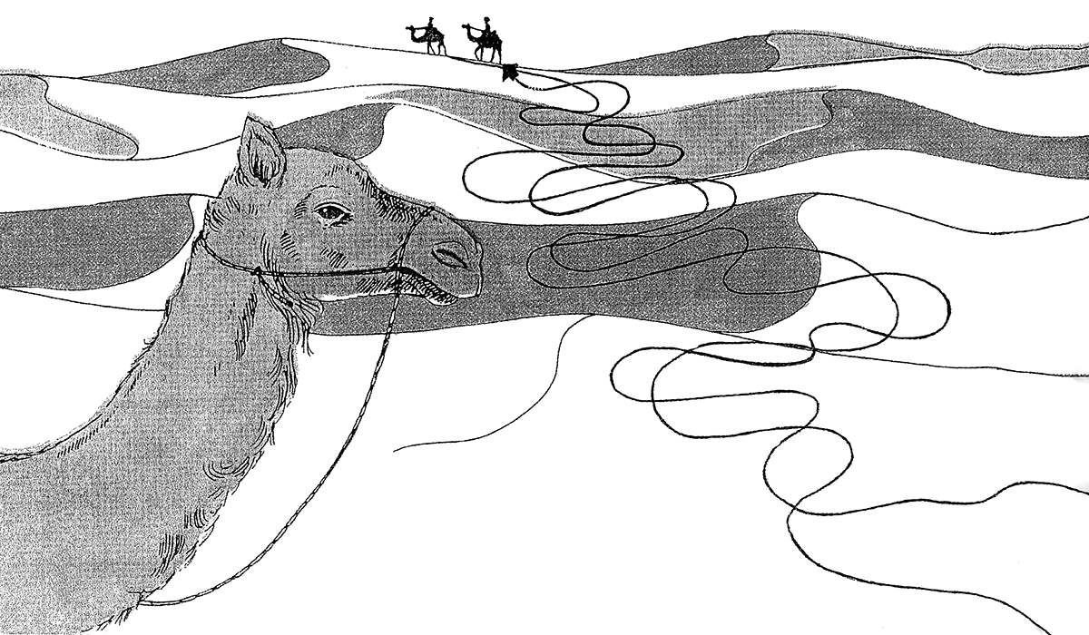 | इस चित्र में रेत के टीलों में ऊँट अपना रास्ता भूल गया है। क्या तुम रास्ता ढूंढने में उसकी मदद कर सकते हो? | Sur cette image, un chameau a perdu son chemin dans les dunes de sable. Peux-tu l’aider à retrouver son chemin ? |