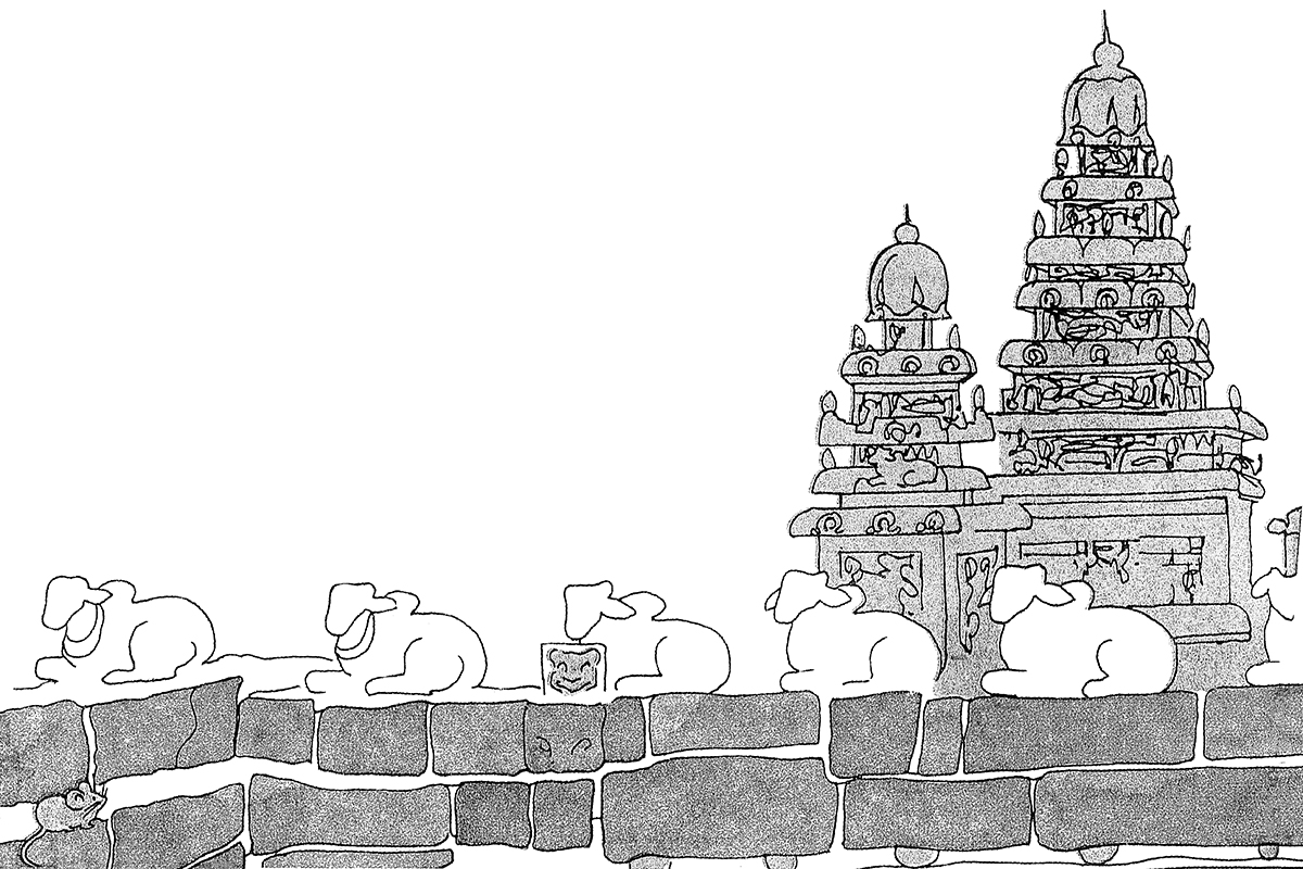 | चित्र में एक छोटा-सा चूहा मंदिर के एक पत्थर के नीचे फंस गया है। क्या तुम बाहर निकलने में इसकी मदद कर सकते हो? | Dans l’illustration, un petit rat est coincé sous une pierre dans un temple. Peux-tu l’aider à en sortir ? |