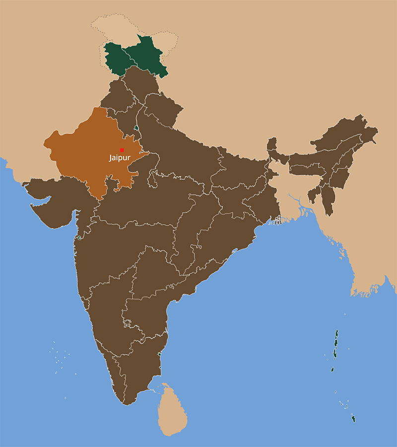 | भारत का दूसरा सबसे बड़ा राज्य राजस्थान है। यह रेगिस्तानी है। यह रेगिस्तानी प्रदेश अपने राजपूत योद्धाओं, बड़े-बड़े किलों, महलों और ऊँटों के लिये प्रसिद्ध है। | Le Rajasthan est le deuxième plus grand État de l’Inde. C’est un désert (de sable). Cette province désertique est renommée pour ses guerriers Rajputs, ses grands forts, ses grands palais et ses chameaux. |