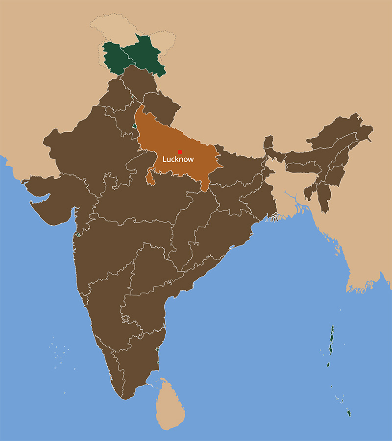 | उत्तर प्रदेश भारत में सबसे अधिक जनसंख्या वाला प्रदेश है। यह आगरा शहर में बने ताजमहल के कारण पूरी दुनिया में मशहूर है। वराणसी गंगा नदी के किनारे बसा हिंदुओं का एक तीर्थस्थान है। यह भी उत्तर प्रदेश में ही है। | L’État d’Uttar Pradesh est le plus peuplé de tous les États de l’Inde. Grâce au Taj Mahal construit dans la ville d’Agra, il est célèbre dans le monde entier. Varanasi, un haut lieu de pèlerinage des hindous se trouve au bord du fleuve Gange. C’est aussi dans l’Uttar Pradesh. |