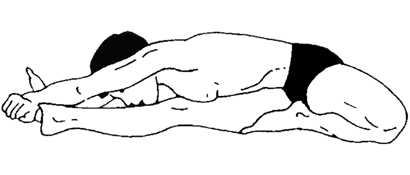 S’asseoir avec une jambe tendue. Positionner le talon de l’autre jambe près du périnée. Tendre les deux mains vers le gros orteil de la jambe tendue et reposer la tête sur le genou. Autre nom : ardha paścimatānāsana. |