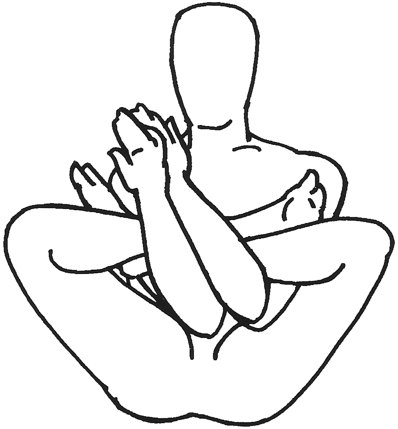 Variante n°2 : S’asseoir et plier les genoux pour poser un pied sur l’autre. Faire passer les bras jusqu’aux coudes sous les pieds et lever l’ensemble jusqu’à la poitrine. Rester assis bien droit. |