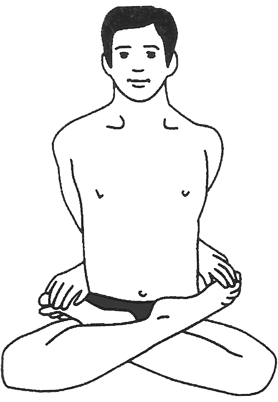Variante n°1 : Poser les pieds sur les cuisses opposées, croiser les bras dans le dos et venir attraper les gros orteils de même côté. Autre nom : brahmāsana (posture de Brahma), variante n°3. Identique à padmāsana (variante n°1) ou vajrāsana (variante n°9). Voir aussi yogāsana (variante n°3). |