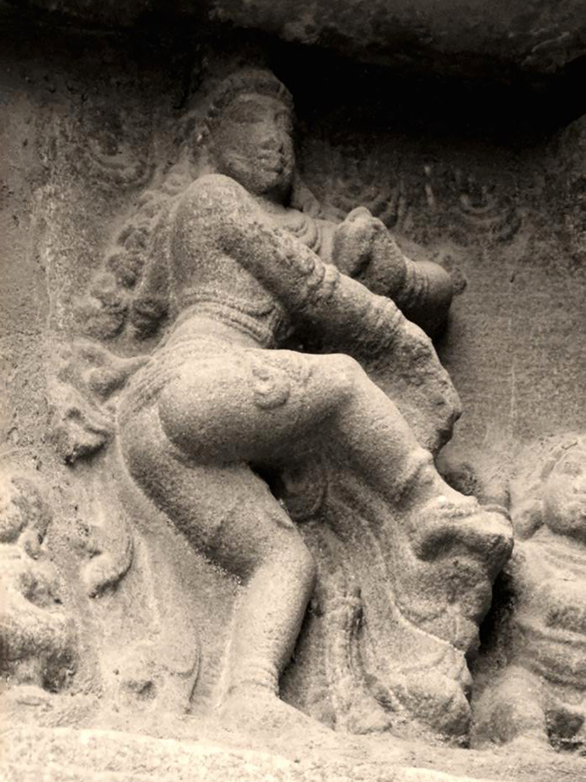Cette posture, dite du cobra, se réfère au serpent-démon Bhujaṅga2, évoqué sur ce pas de danse, Bhujaṅgatraśita Karana.