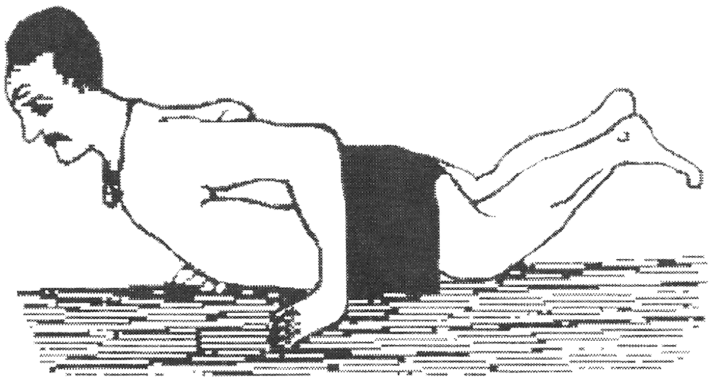 Variante n°2 : Même principe que la variante n°1, mais seuls le ventre et le bassin touchent le sol : les pieds sont soulevés. |