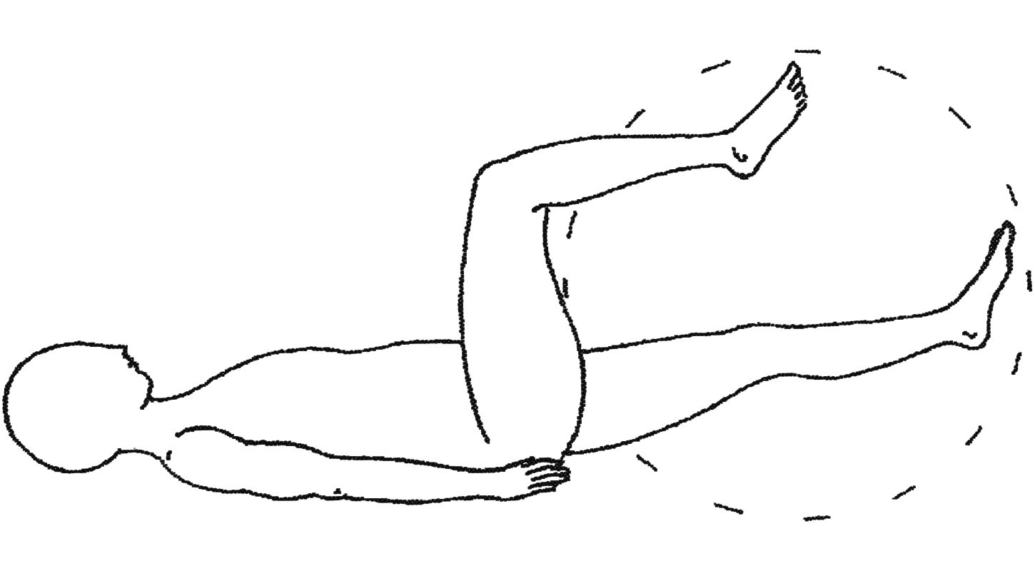 Variante n°1 : S’allonger. Inspirer et retenir sa respiration. Lever les jambes et les faire tourner, comme sur un vélo imaginaire. |