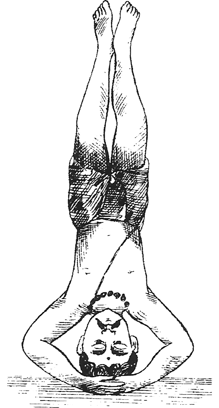 Variante n°2 : Se tenir dsur la tête en s’aidant des mains, les jambes bien tendues. |