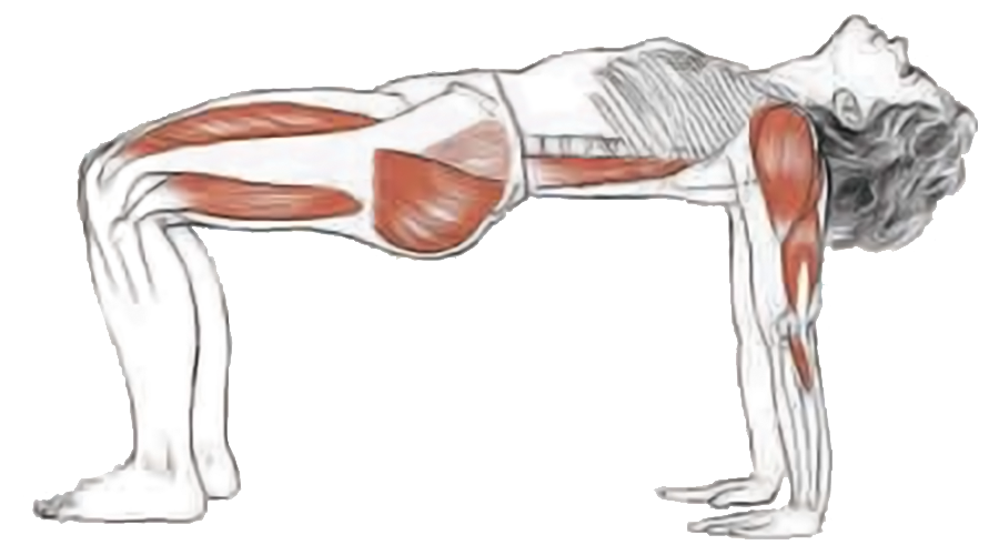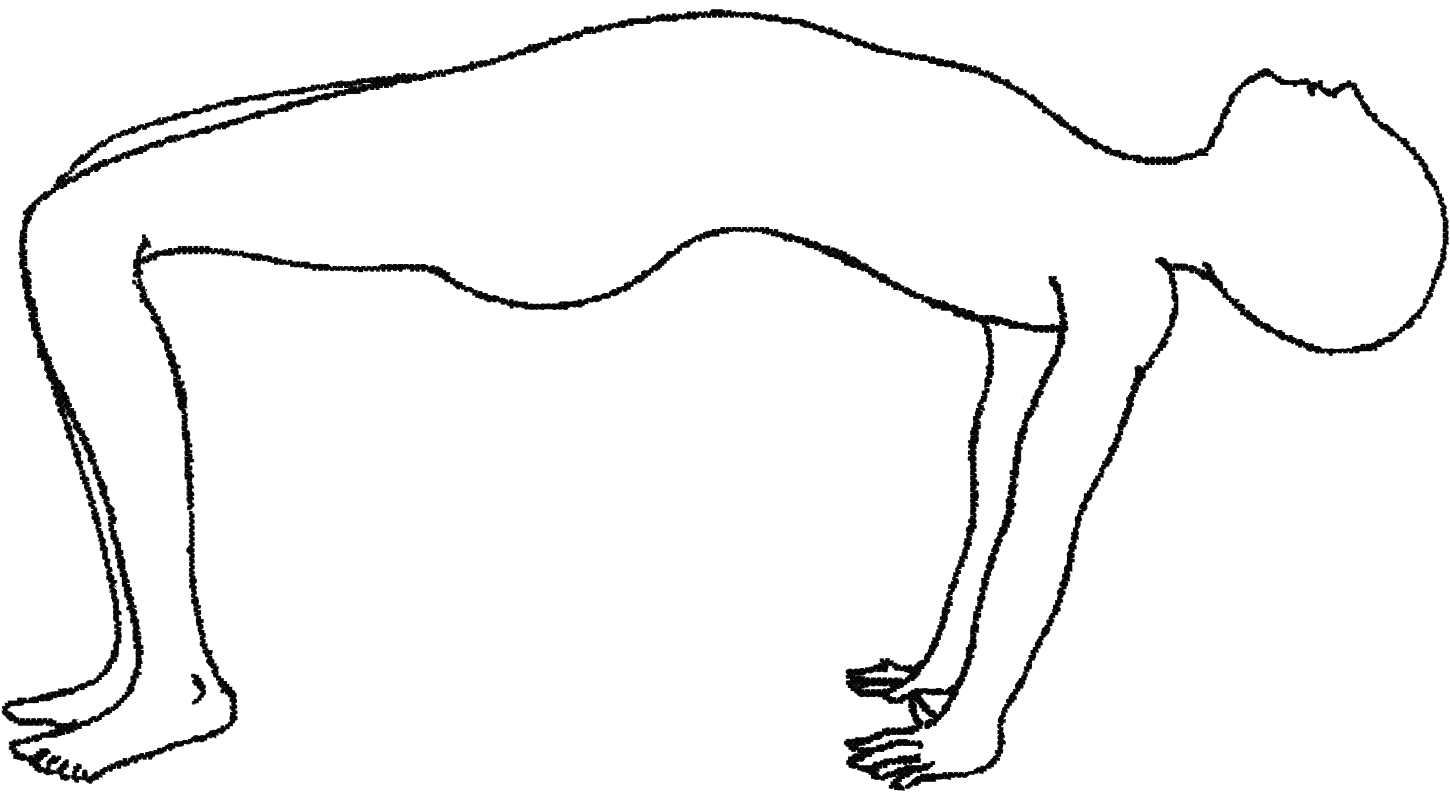 S’allonger sur le dos. Plier les genoux et approcher les talons des fesses. Placer les mains sous les épaules respectives et lever tout le corps en s’aidant des mains et des pieds. |