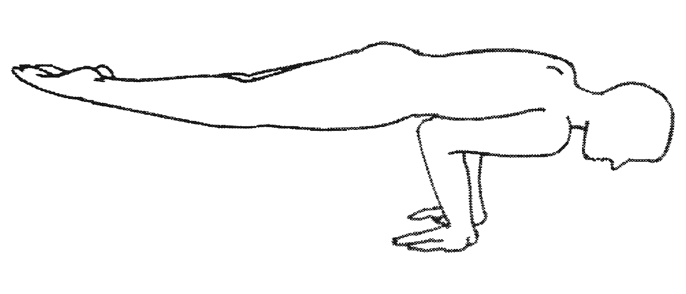 Mettre les mains au sol ; placer les coudes de part et d’autre du nombril et soulever le corps entier comme un bâton. C’est une variante de mayūrāsana. Voir aussi daṇḍāsana. |