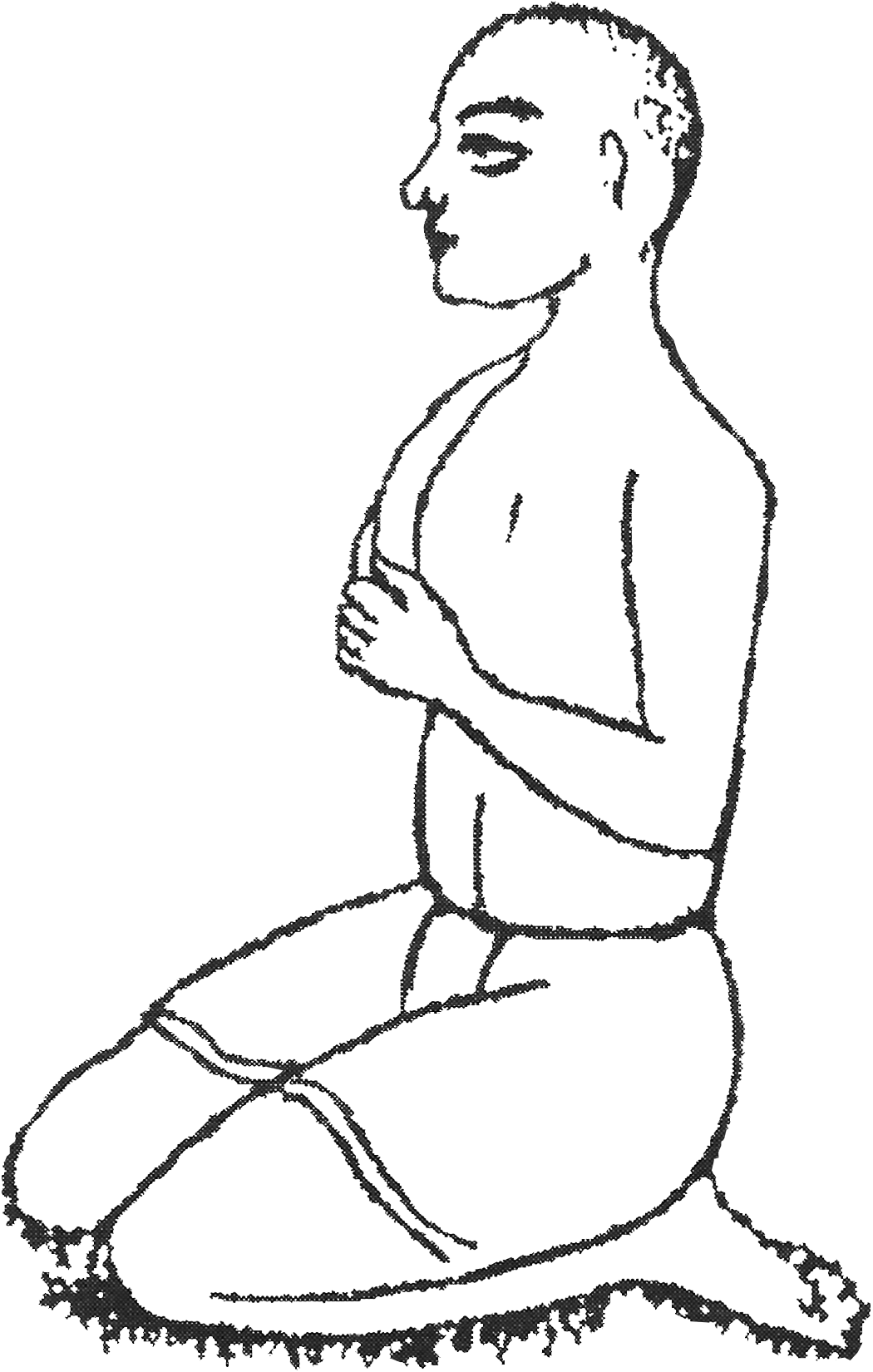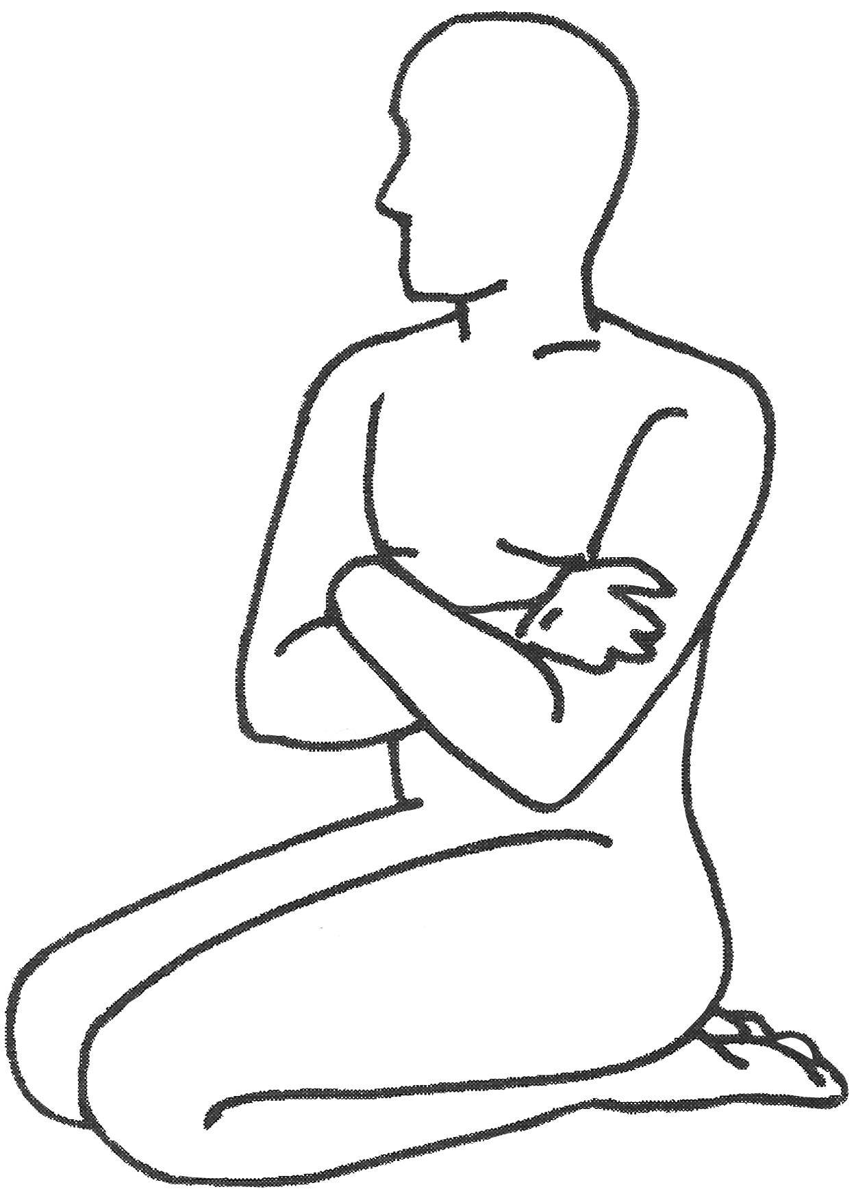 | S’agenouiller, s’asseoir confortablement sur les talons et se tenir droit. Les mains peuvent être placées | |