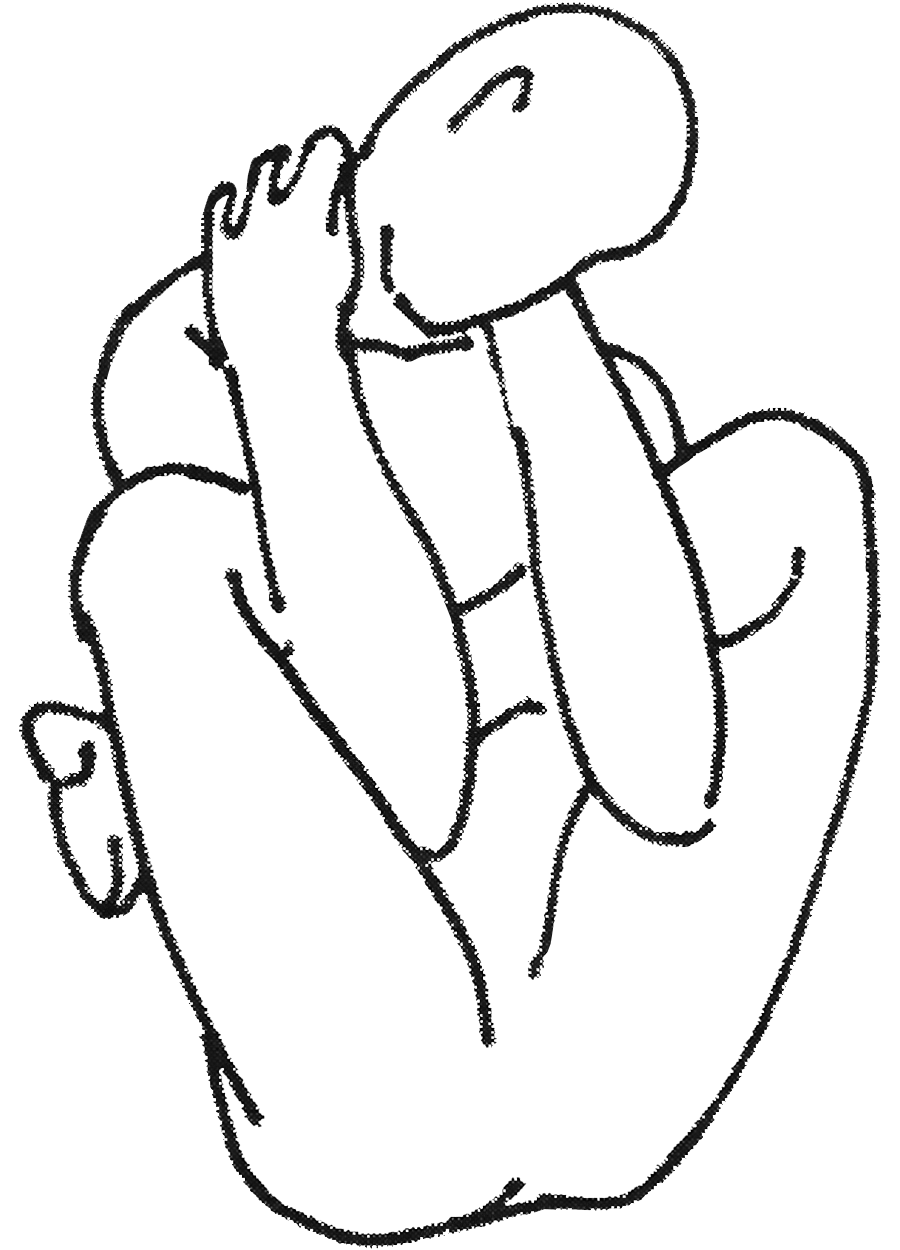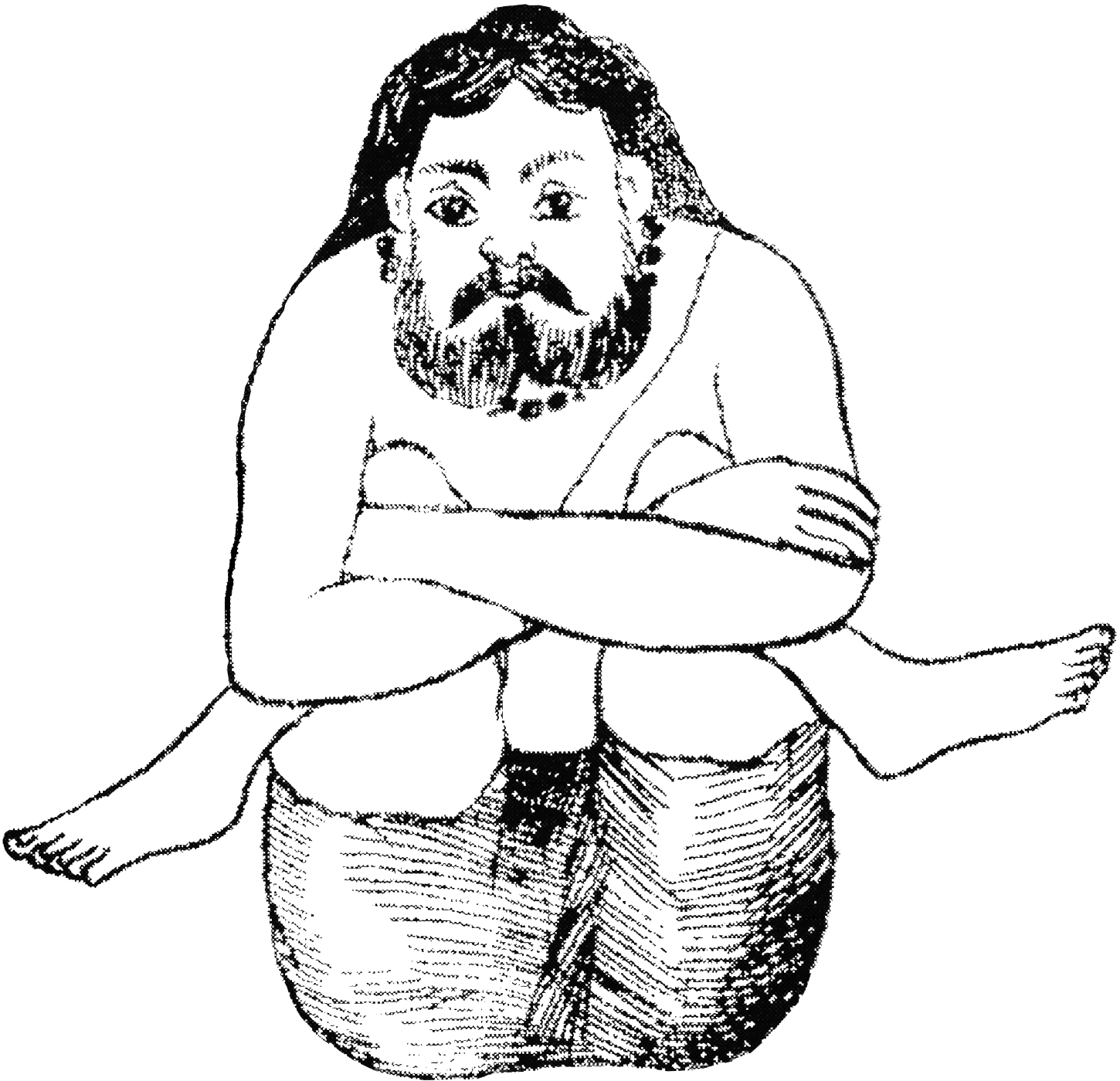 Variante n°1 : S’asseoir en tailleur (padmāsana) en croisant les jambes et en plaçant le pied droit sur la cuisse gauche et vice-versa. Lever le genoux jusqu’à la poitrine. Entourer les jambes croisées des bras et rester immobile. |