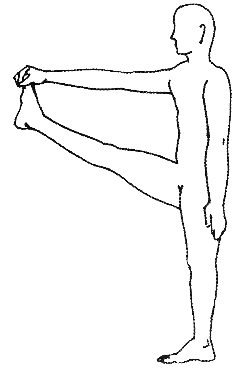 Variante n°1 : Se tenir debout. Lever une jambe bien droite et en attraper les orteils avec la main du même côté ou du côté opposé. Recommencer avec l’autre jambe. |