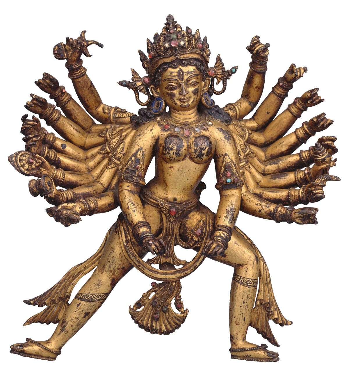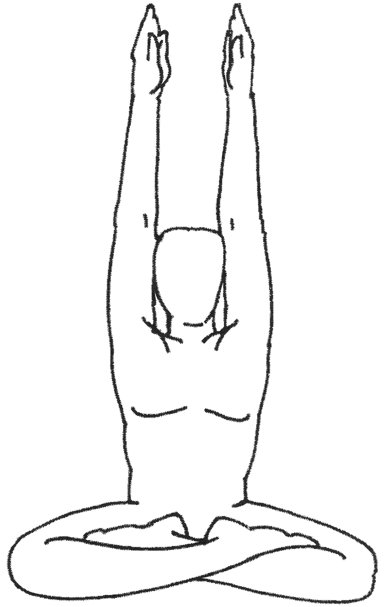 Se mettre en position du lotus en croisant les jambes. Lever les bras au-dessus de la tête et joindre les mains. Autre nom : tāḍāsana (variante n°2). |