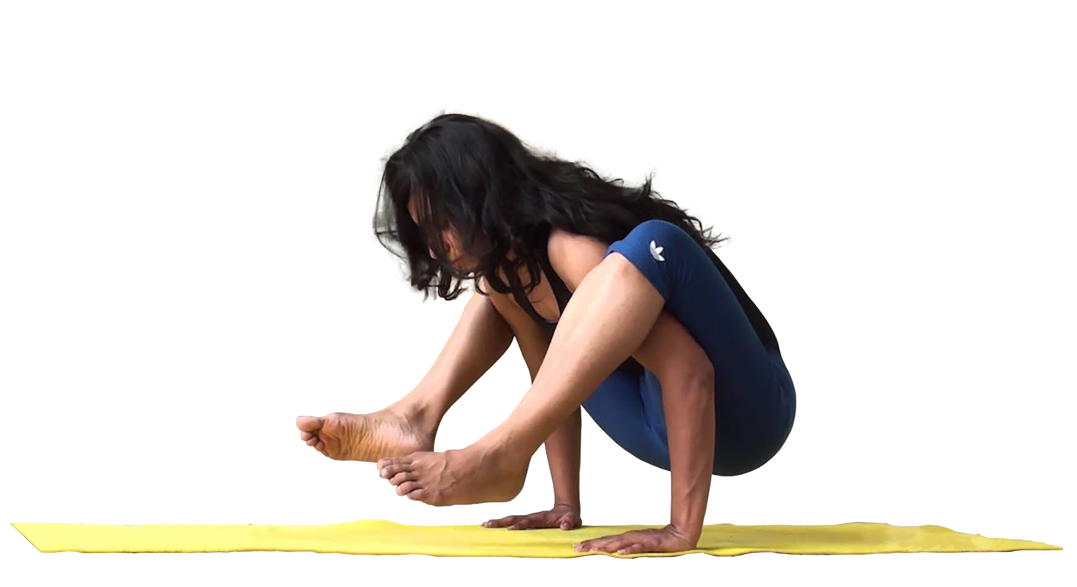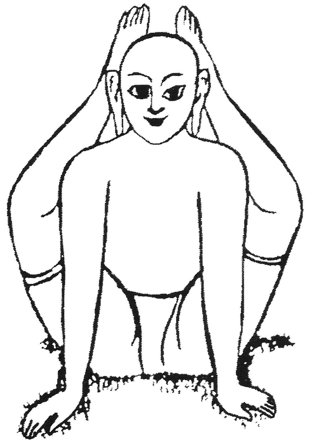 Assis, prendre le pied gauche et le placer derrière la tête. Symétriquement, prendre le pied droit et le placer derrière la tête. Plaquer les mains au sol. |