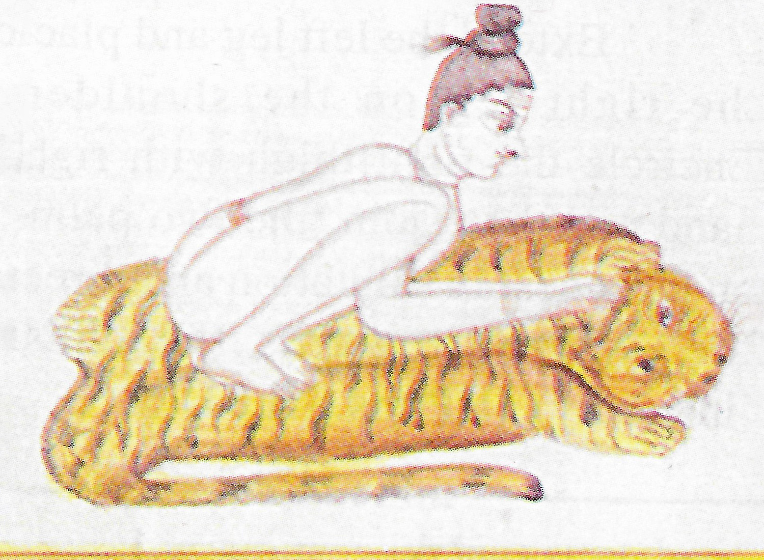 Variante n°1 : Placer les avant-bras et les mains par terre, comme dans caṭakāsana. Amener les mollets au niveau des bras et toucher les oreilles avec les genoux. Se tenir ainsi en équilibre. |