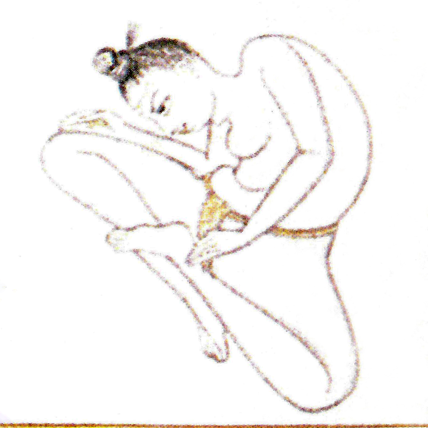 Assis en tailleur, descendre le front au niveau du nombril et rester immobile. |