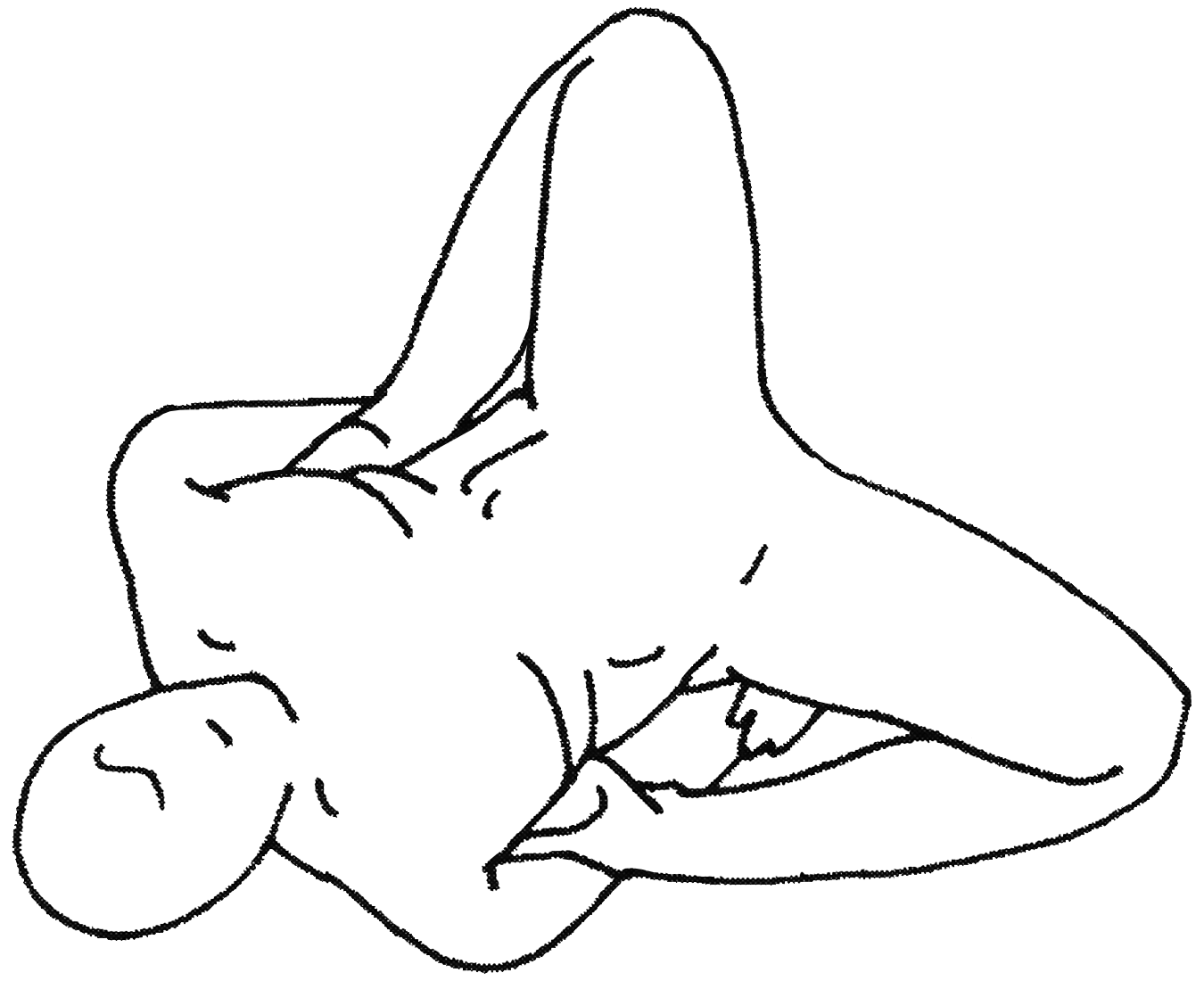 Variante n°2 : Même position que pour la variante n°1, mais cette fois les bras sont posés sur le ventre. Le regard est dirigé vers le bout du nez. |