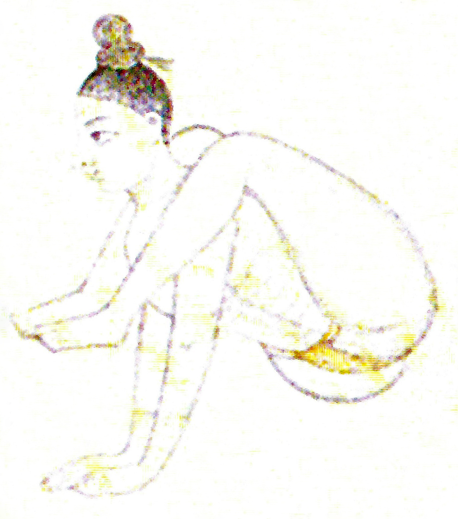 Amener les genoux au-dessus des épaules jusqu’à ce que les pieds touchent la poitrine. En équilibre sur les mains, garder cette position confortablement. |
