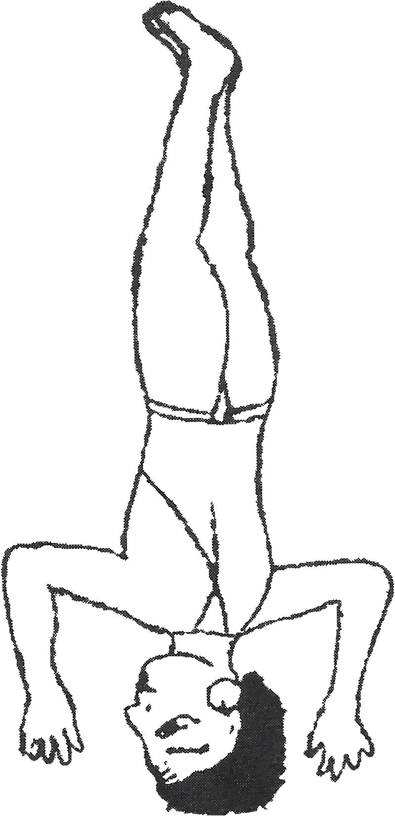 Variante n°4 : Les deux mains et la tête sont placées par terre, le corps bien droit dans la position du poirier. |