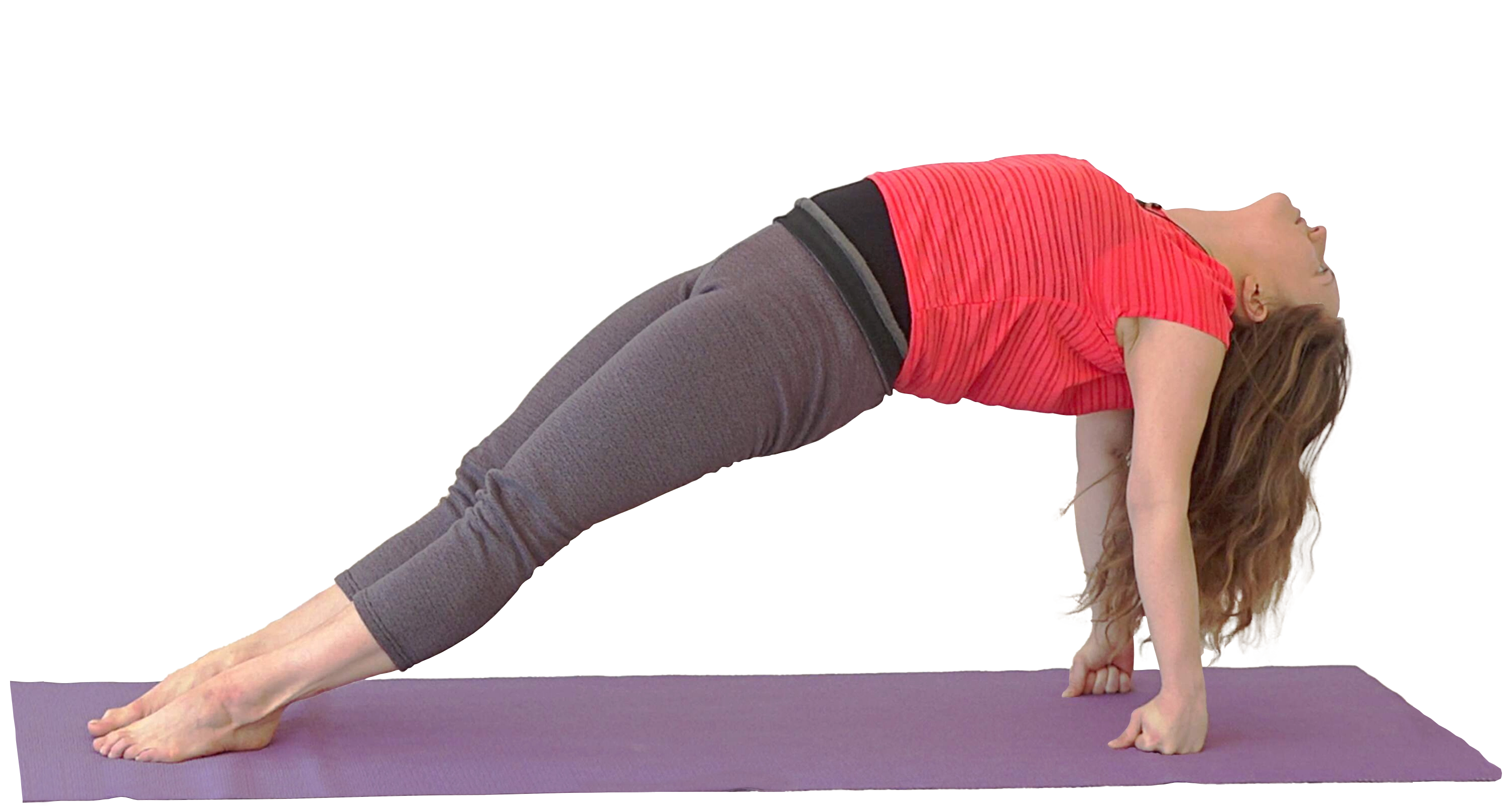 Exemple n°2 : S’allonger sur le dos. En s’aidant des poings et des pieds, soulever le corps pour faire une arche comme un pont. |