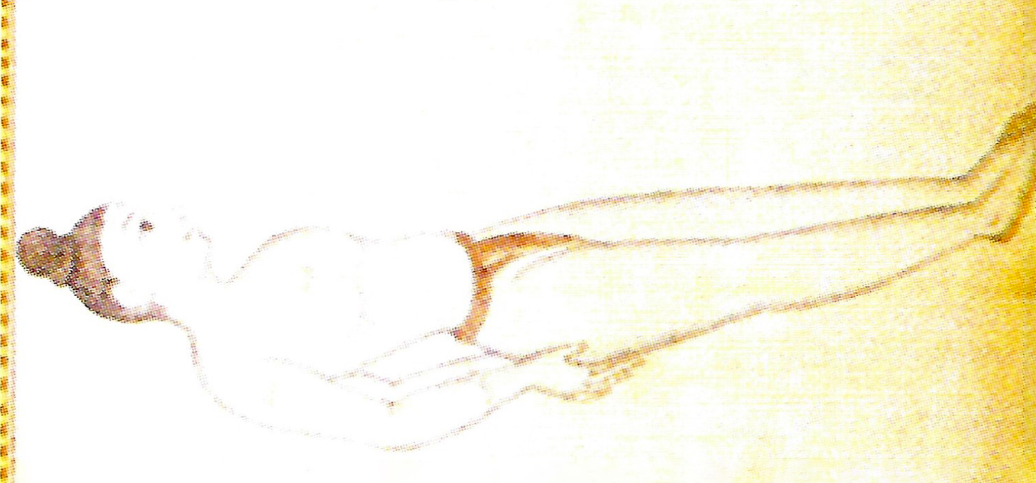 S’allonger sur le dos. En se reposant sur les coudes, placer les mains sous les fesses. Soulever la tête, les cuisses, les mollets et les pieds. Garder cette position. |
