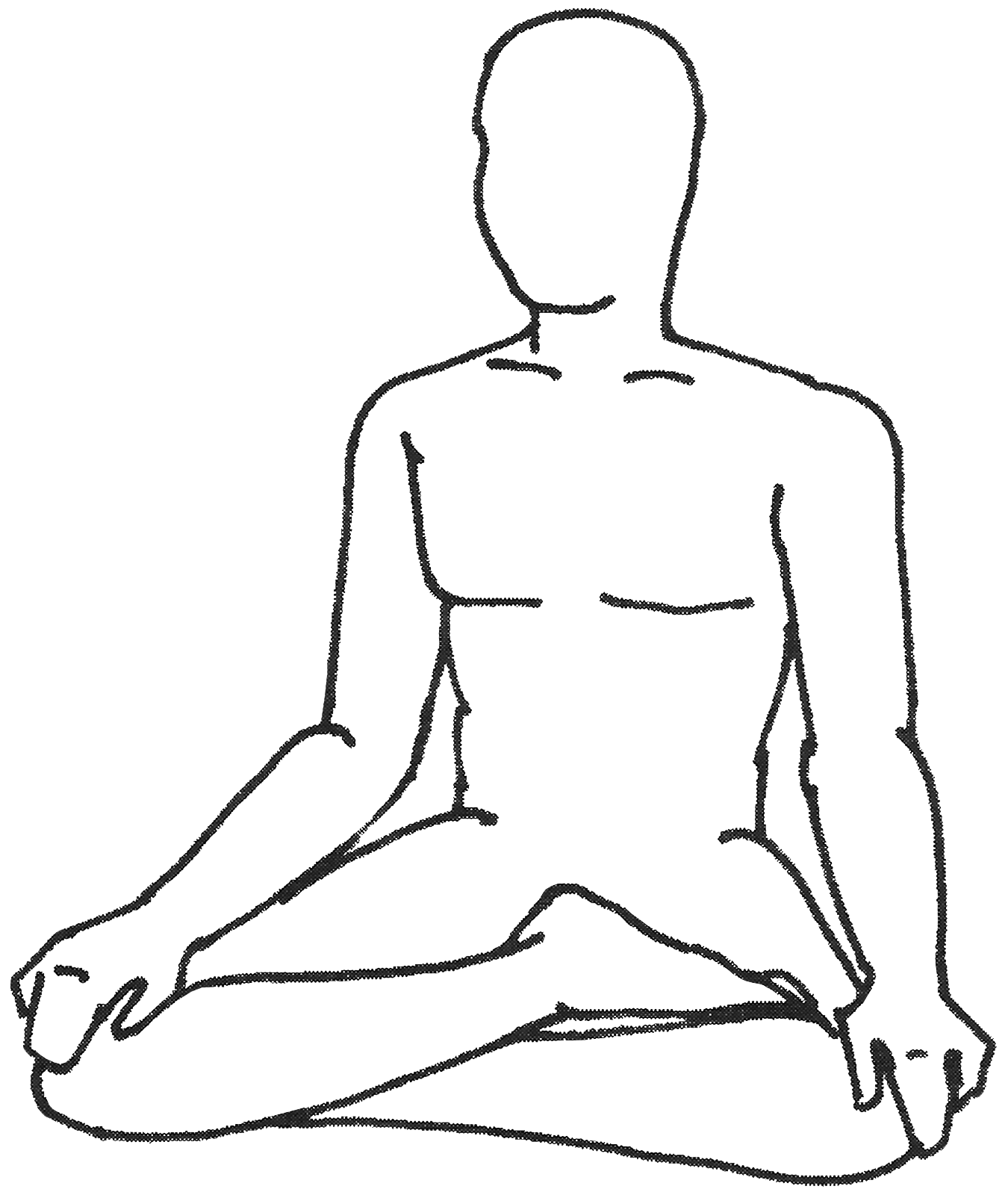 Assis par terre, postionner le pied droit contre le périnée et le pied gauche au sol, orteils tournés vers l’avant. Les mains sont posées sur les genoux et le regard dirigé vers le bout du nez. |