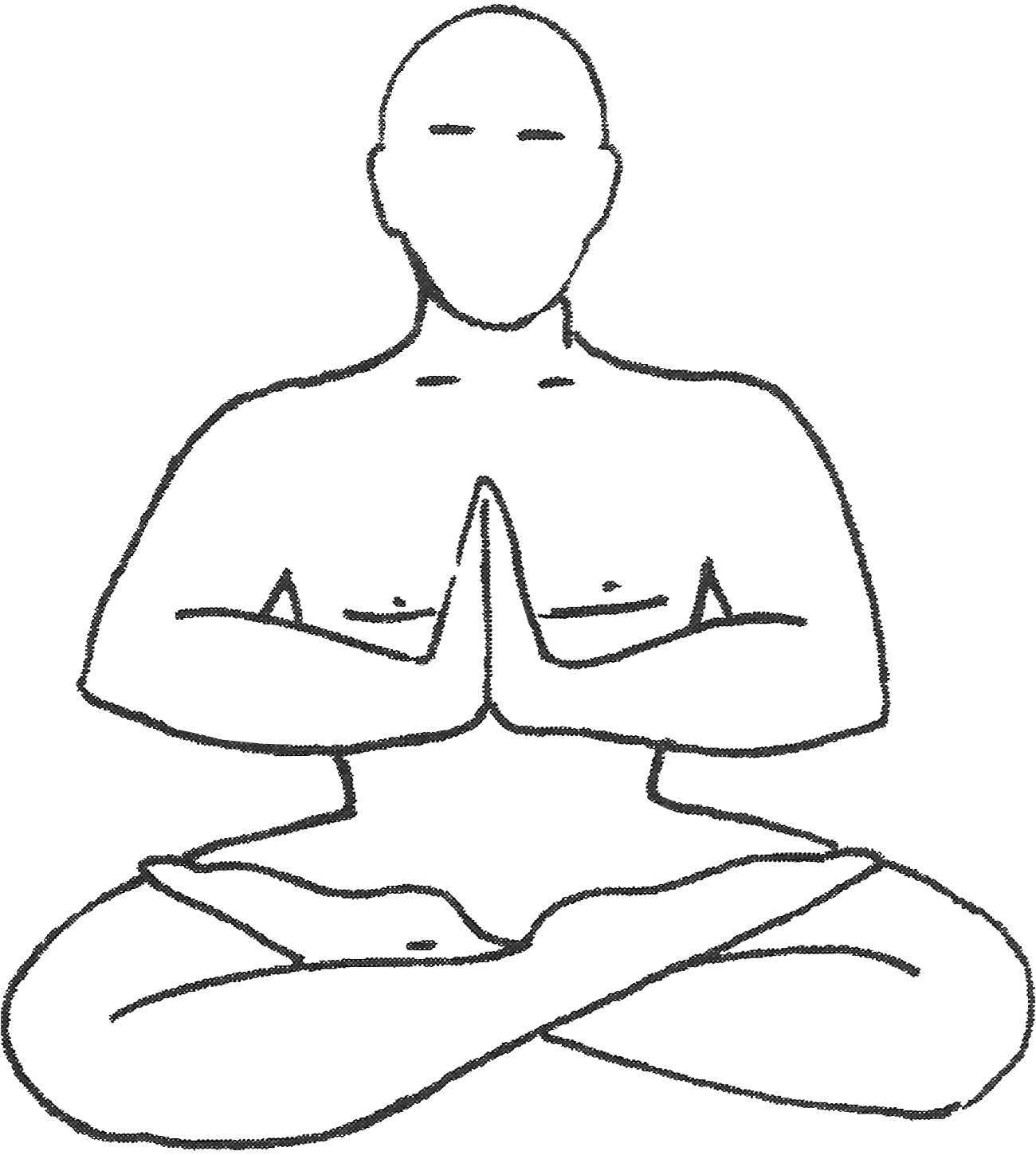 Variante n°4 : Même posture, mais les mains sont jointes devant la poitrine. |