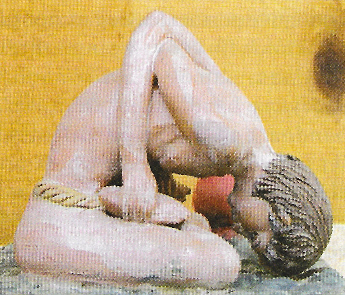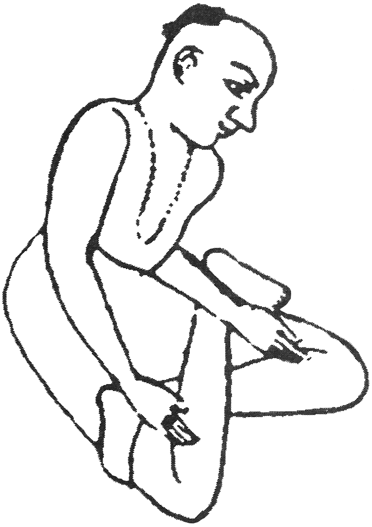 Variante n°11 : Le pied droit est positionné devant le pubis, les orteils par terre et le talon devant le nombril. le pied gauche vient sur le talon droit et touche l’os iliaque. La cuisse droite est projetée devant. Les mains reposent sur les genoux. |