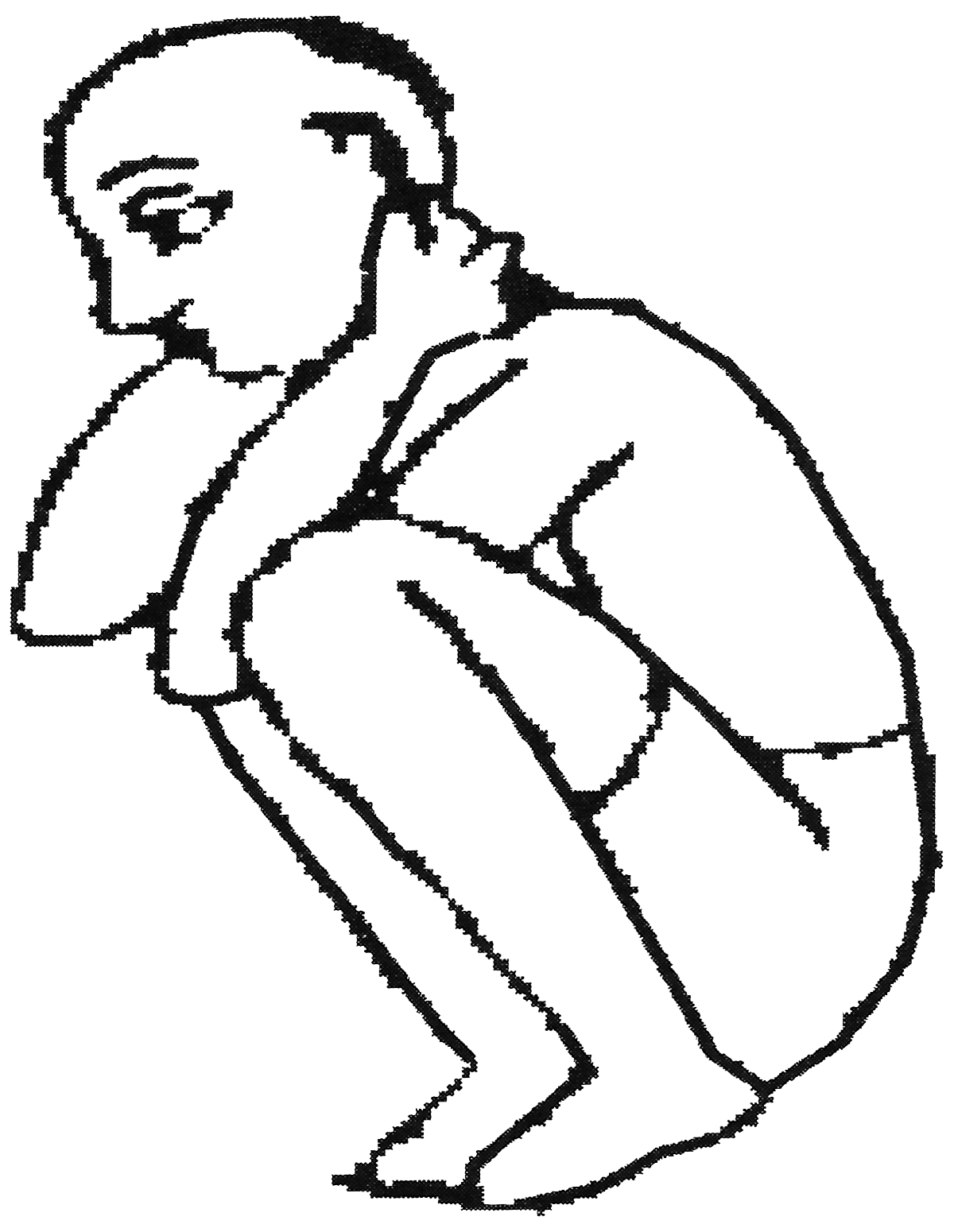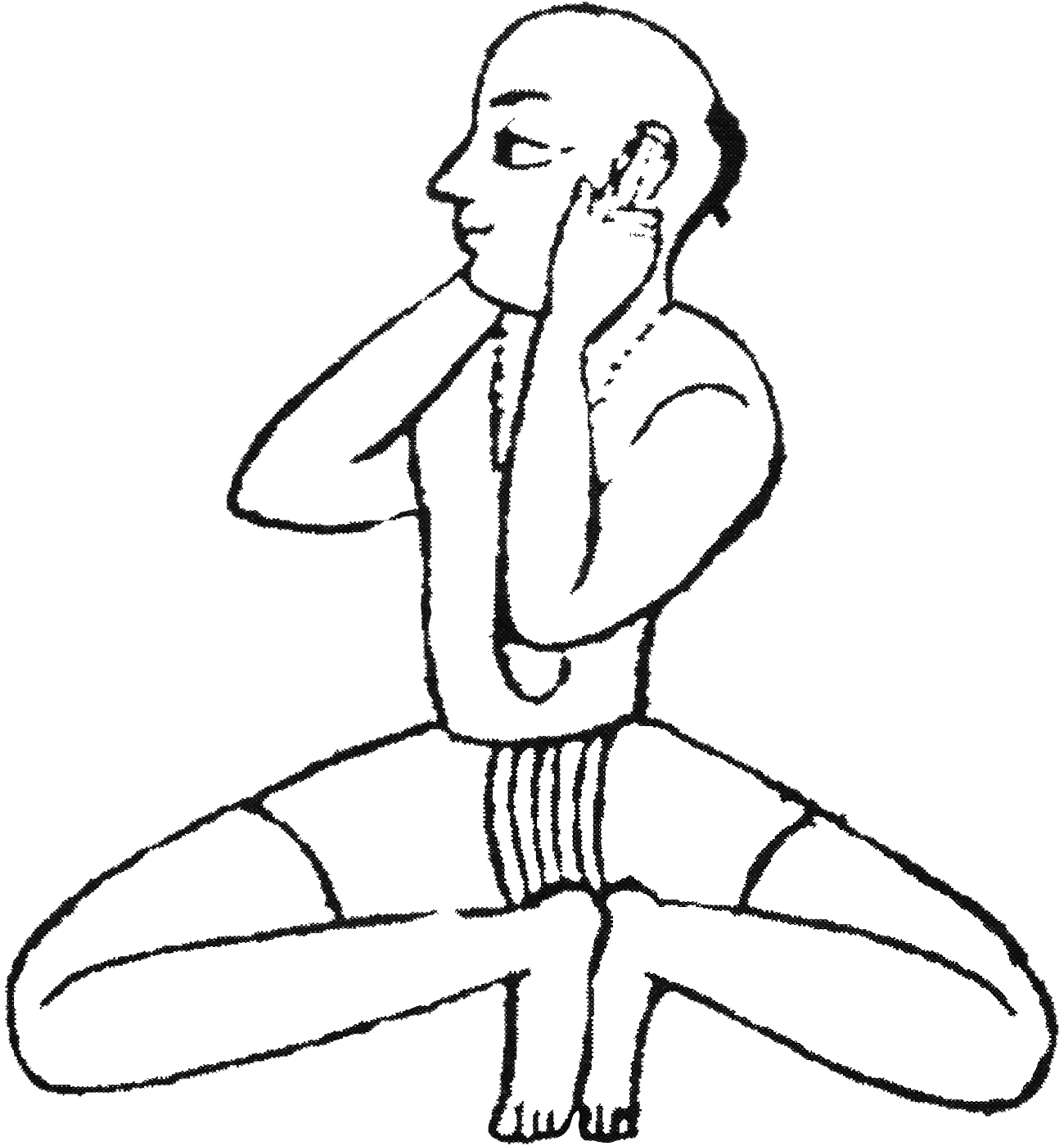 Variante n°3 : S’accroupir sur les talons. Les doigts tiennent le lobe des oreilles. |