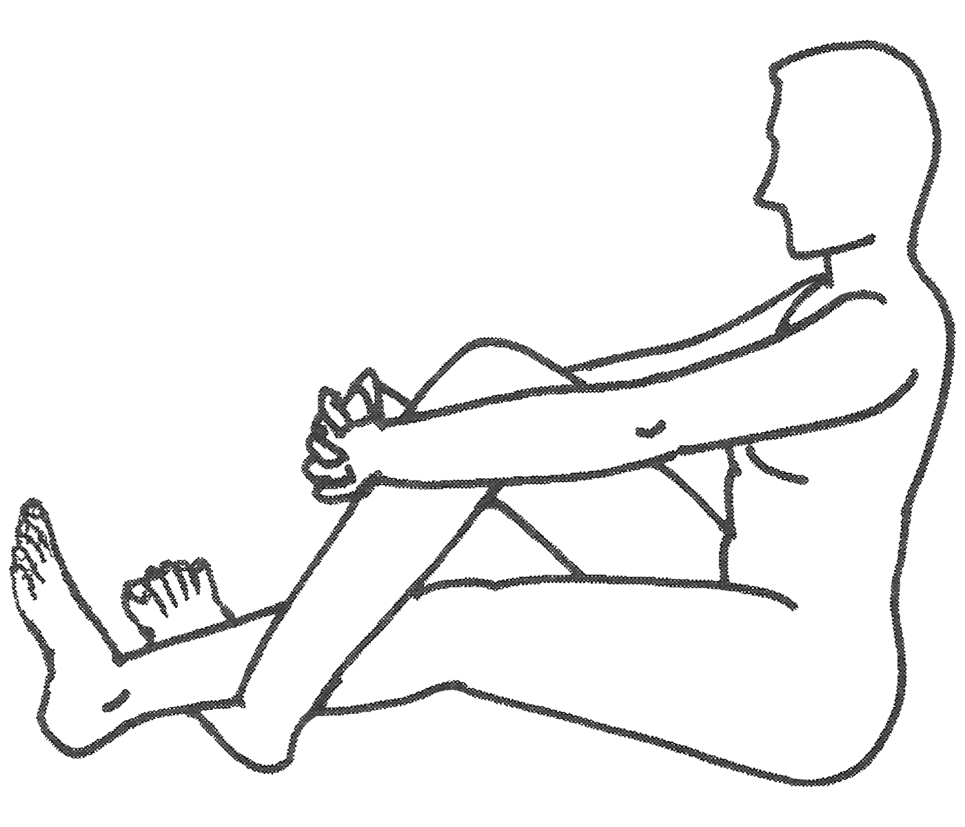 Variante n°2 : S’asseoir par terre, jambe gauche tendue. L’entourer de la jambe droite. Croiser les doigts et entourer le genou droit des mains. |