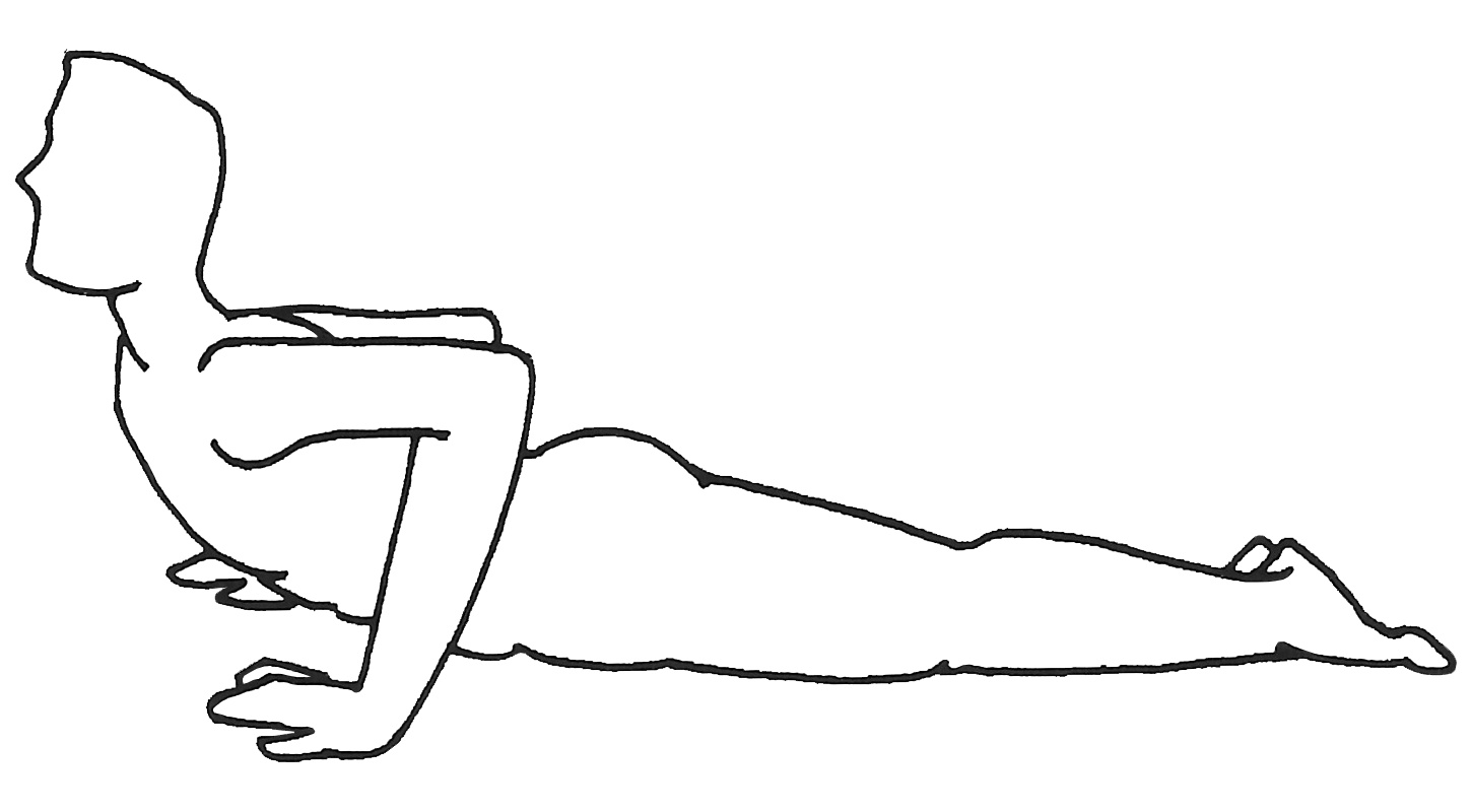 Variante n°4 : S’allonger sur le ventre. Poser les paumes des mains par terre, de part et d’autre de la poitrine. Tout en laissant le corps, du nombril aux orteils plaqué au sol, lever la tête et le tronc comme un serpent. Posture similaire à bhujaṅgāsana (variante n°1). |