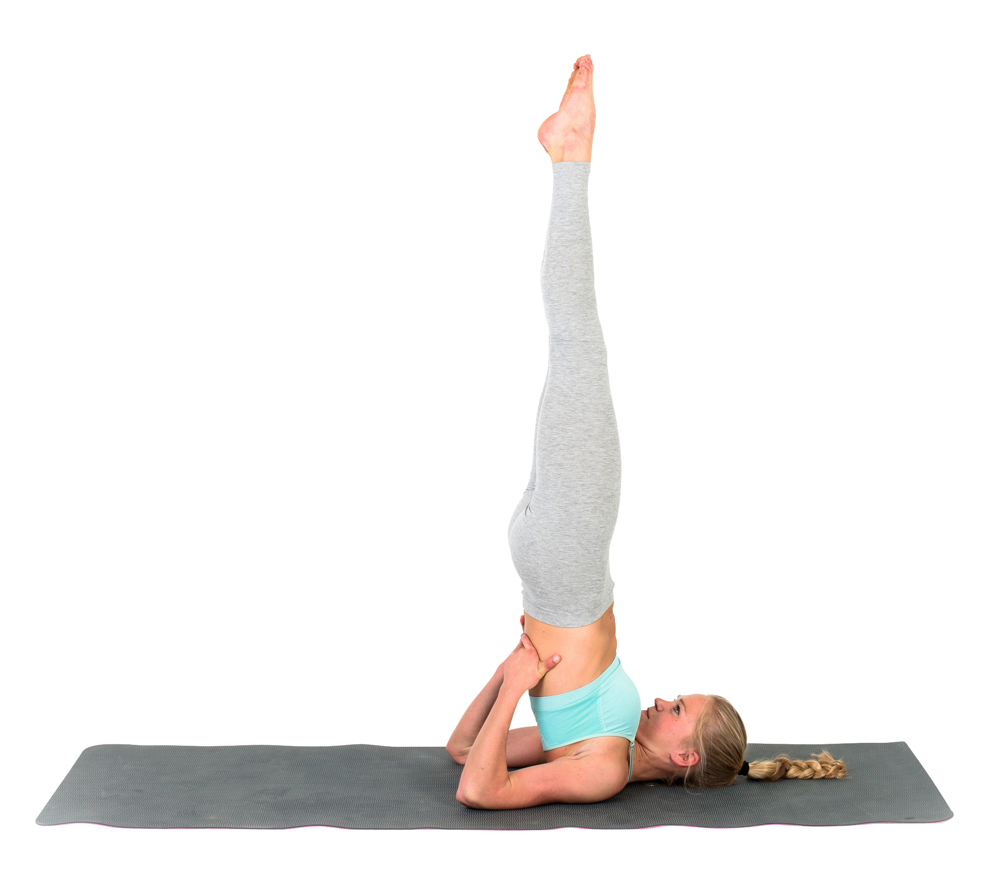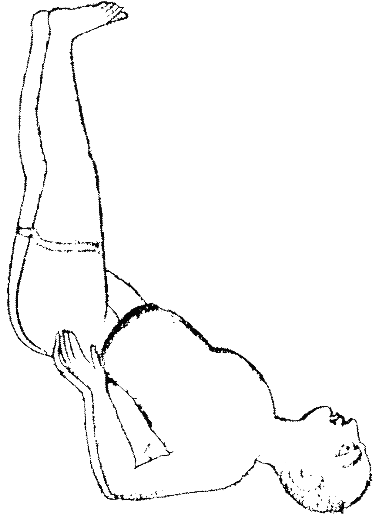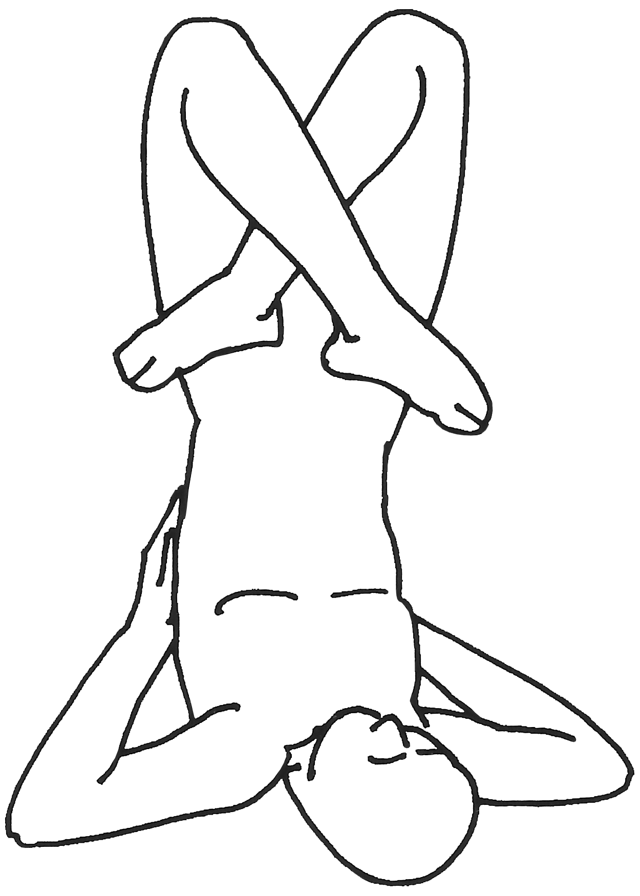 Variante n°2 : Depuis la position allongée sur le dos, tendre les jambes vers le ciel en maintenant les reins avec les mains. Puis croiser les jambes, comme dans padmāsana. |