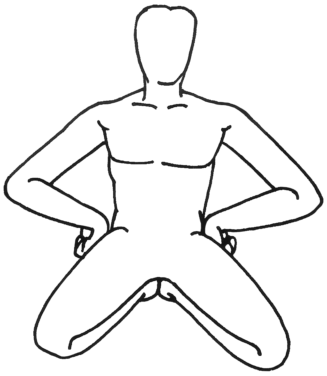 Variante n°2 : Se mettre à genoux, les talons sous les fesses. Les pieds sont tournés vers l’arrière et les genoux restent à terre. Mettre les mains sur les hanches. |