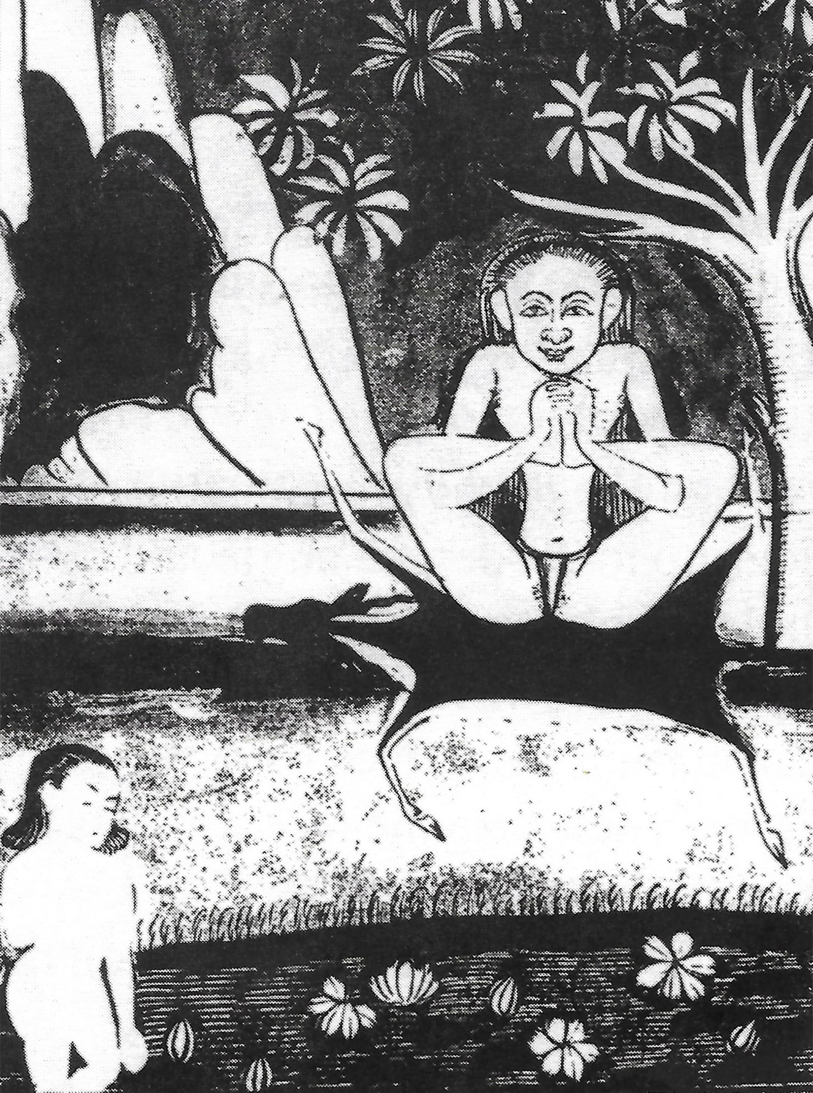 Assis, amener les plantes des pieds l’une contre l’autre. Insérer les mains sous les jambes et, tout en entrecroisant les doigts, agripper les orteils. Lever les pieds. Pencher la tête en avant et tenter de toucher les pieds avec le front. Porter le regard au bout du nez. |