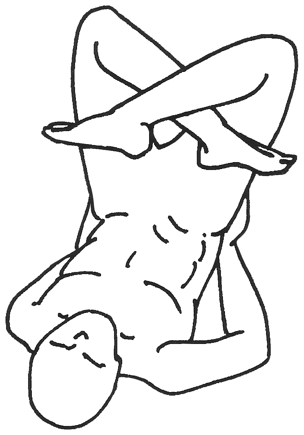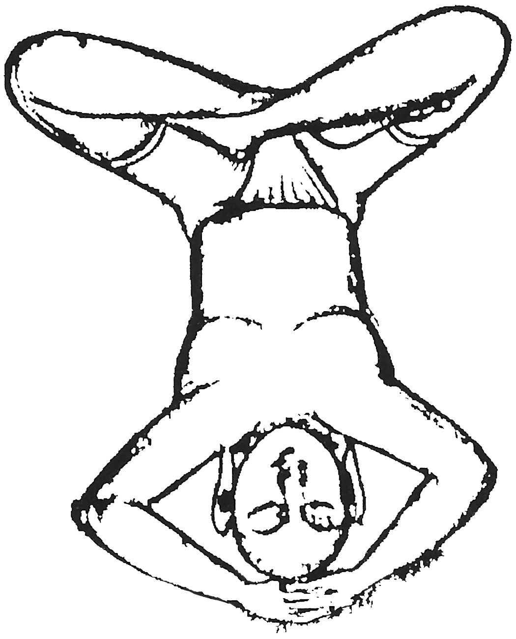 Variante n°2 : Prendre la posture ardhapadmāsana. Puis placer la tête par terre, les épaules restant au sol. Lever les jambes, les mains soutenant les reins. |