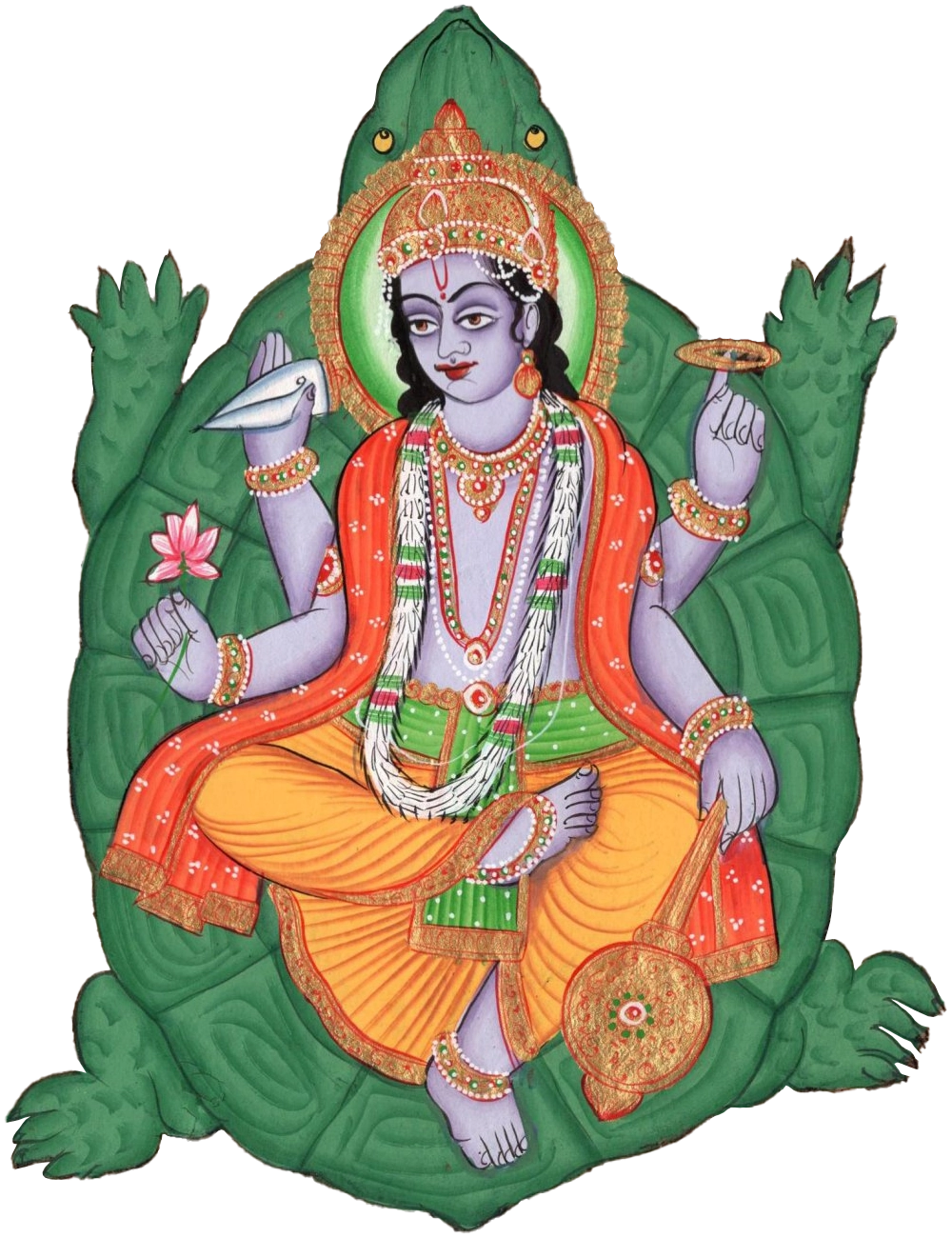 | 1 | कूर्म (kūrma) signifie tortue, mais c’est surtout le deuxième avatar de Vishnu. Voir दशावतार-स्तोत्रम् (Daśāvatāram). |