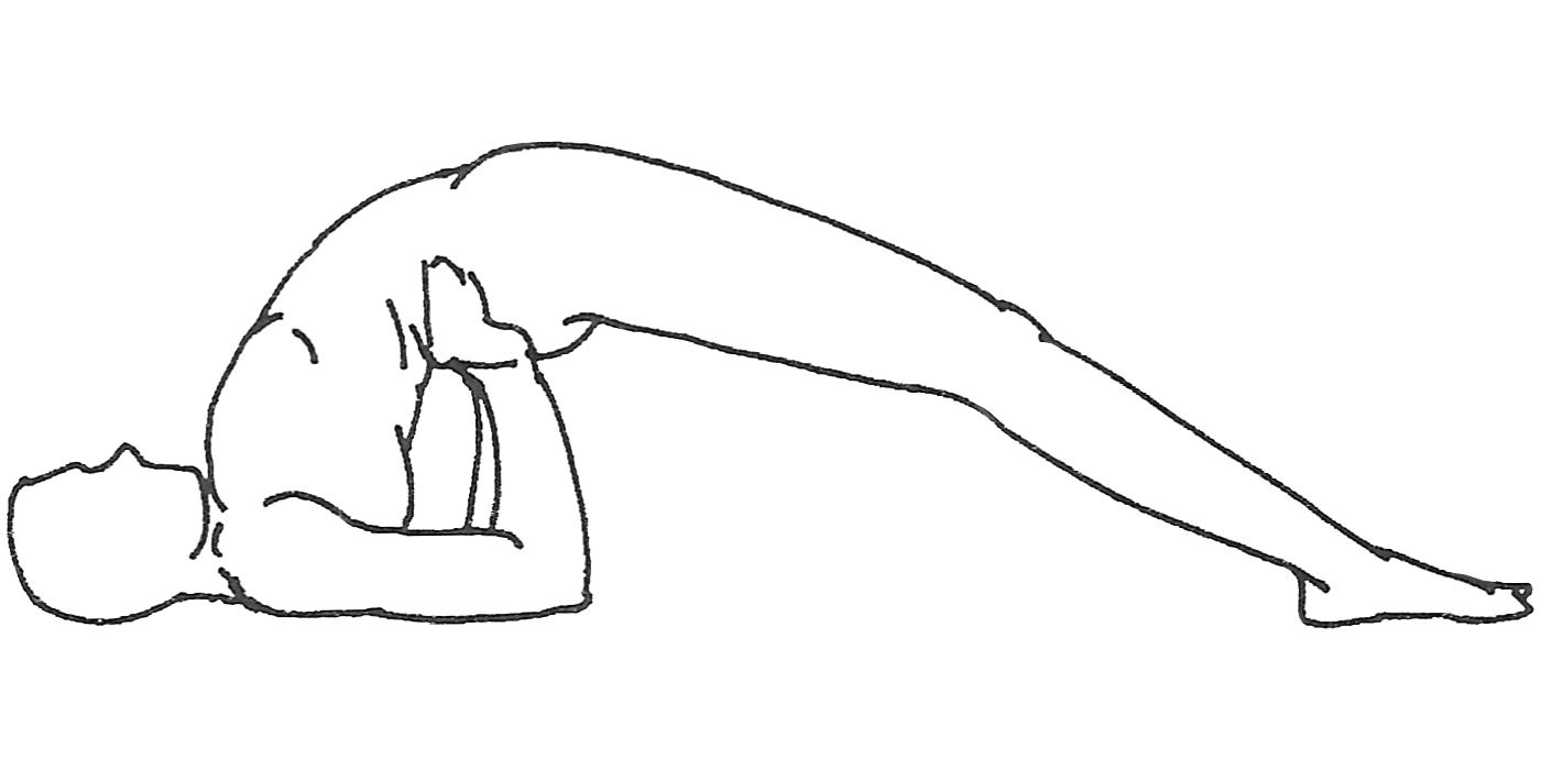 Variante n°1 : S’allonger sur le dos. Lever le bassin et le supporter par les mains, les coudes restant au sol. Le menton touche la poitrine. |