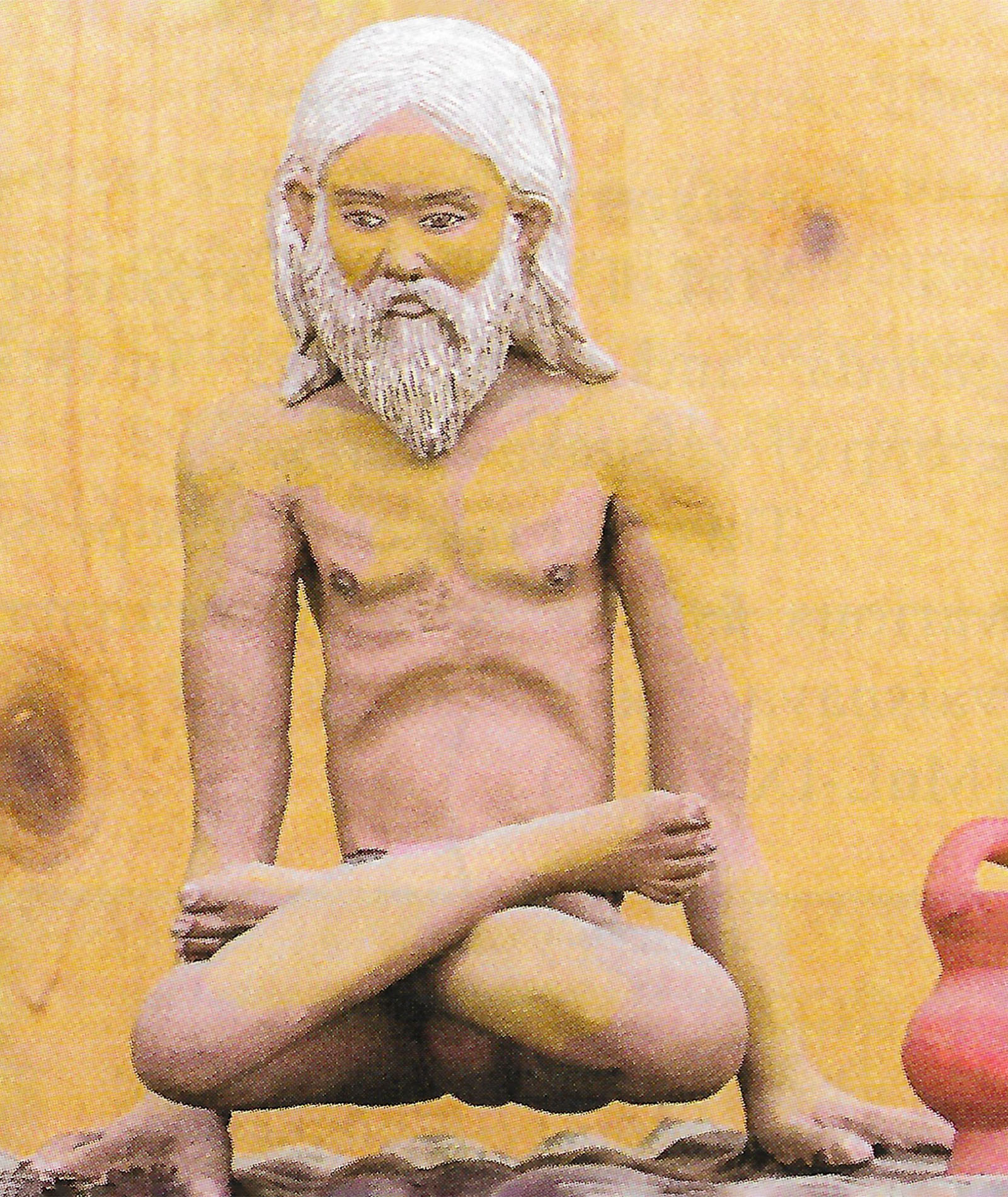 S’asseoir en position du lotus (padmāsana), jambes croisées. Placer les mains au sol de part et d’autre des genoux et lever le corps entier à l’aide de smains. Autre nom : कुक्कुटासन, kukkuṭāsana, (variante n°2). |