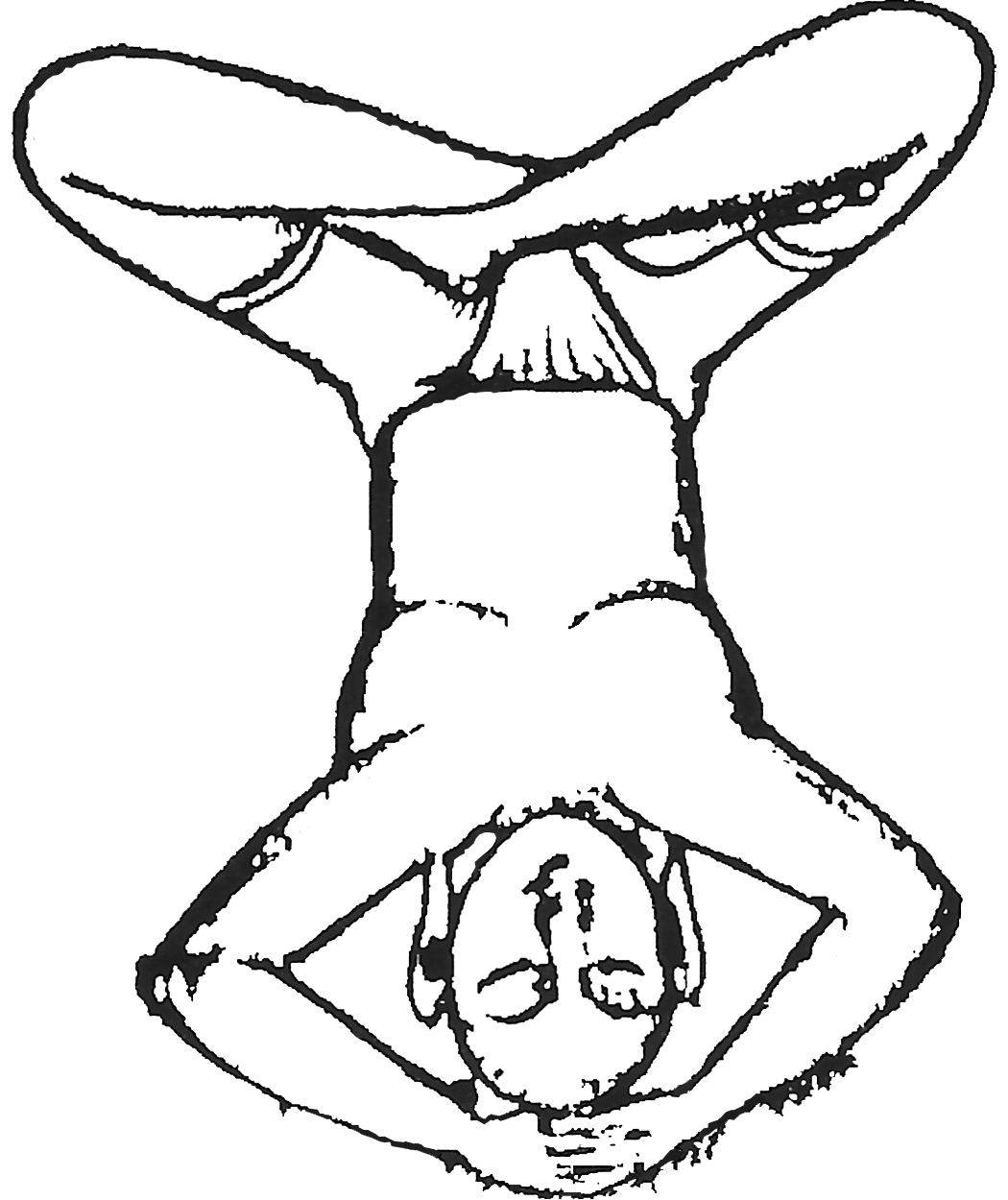 Placer les coudes et la tête au sol et lever les jambes comme dans śīrṣāsana (variante n°1). Puis croiser les jambes (padmāsana) et rester immobile. |