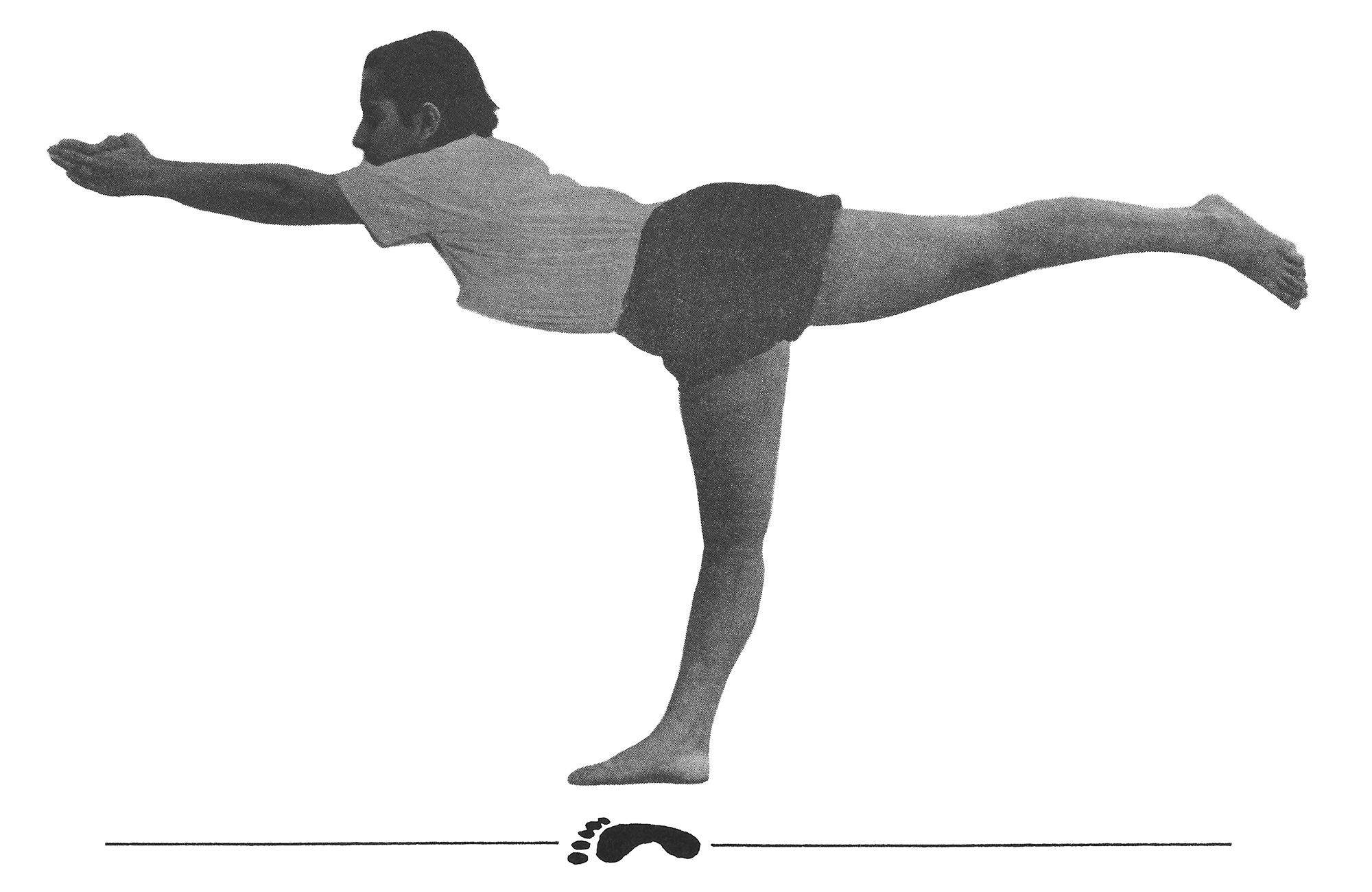 Variante n°3 : Se tenir debout (tāḍāsana), les mains le long du corps. Sauter et écarter les jambes d’environ 1 m en écartant aussi les bras à l’horizontale, paumes tournées vers le bas. Joindre les mains en les tournant vers le haut et en levant les bras sans plier les coudes. Tourner le pied droit de 90° et le pied gauche de 45°. Se cambrer et tourner le buste vers la droite. Plier le genou droit en gardant la jambe gauche bien tendue, comme dans la variante n°1. Poser la poitrine sur la cuisse droite. Tendre les bras vers l’avant. Lever la jambe gauche et redresser la jambe droite. Recommencer dans la position miroir. |